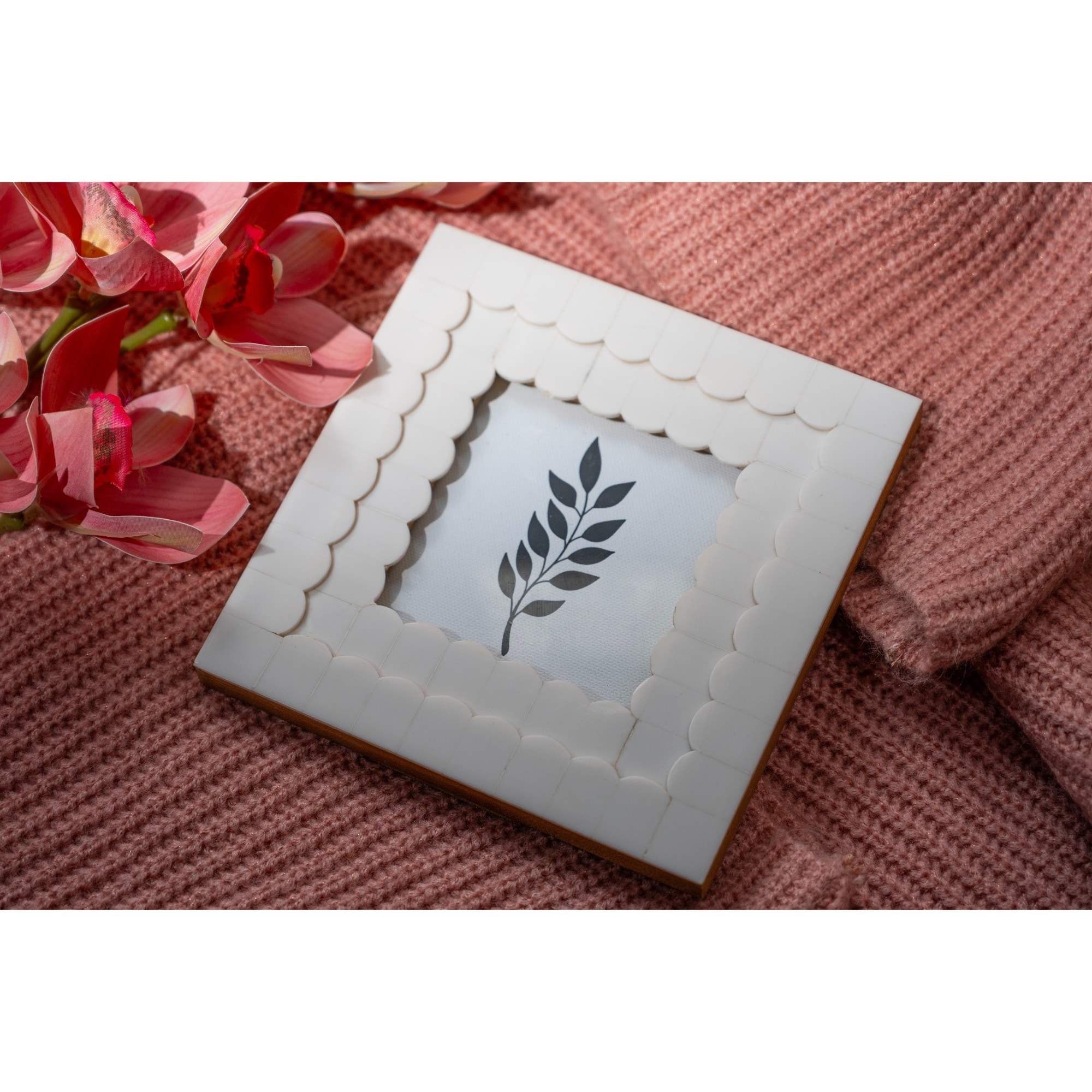 Rectangular Flower Border Picture Frame - for 4" x 4" Photo - White