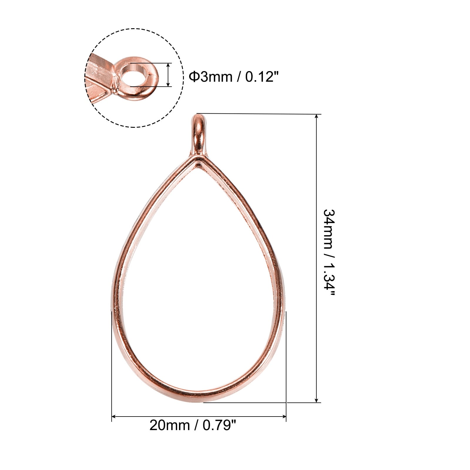 Alloy Open Back Bezel Pendants, Drop Shape Hollow Resin Pendant Frame for DIY Crafts Earring - Rose Gold - 50 Pcs