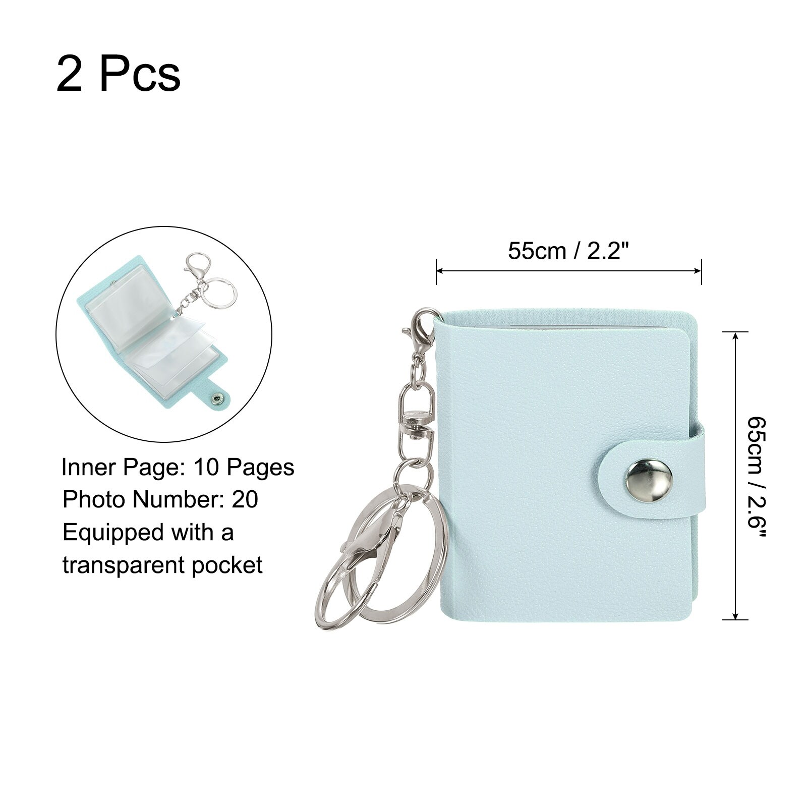 2 Pcs Personalized Leather Mini Photo Album Keychain with 10 Pictures