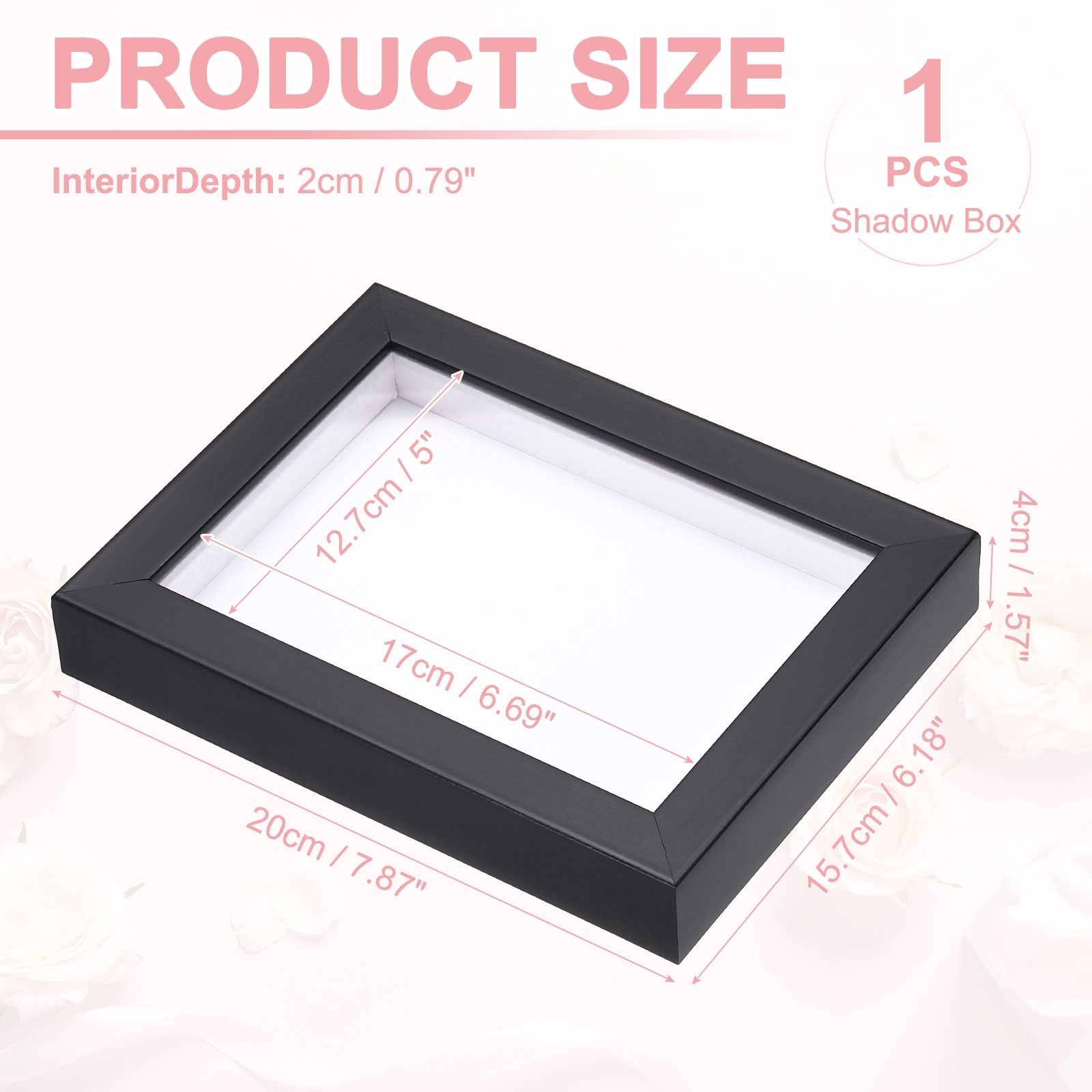 Shadow Box Display Frame, Photo Shadow Box Plastic Display Case Wall Mount & Tabletop Display for DIY Photos Flowers Wedding