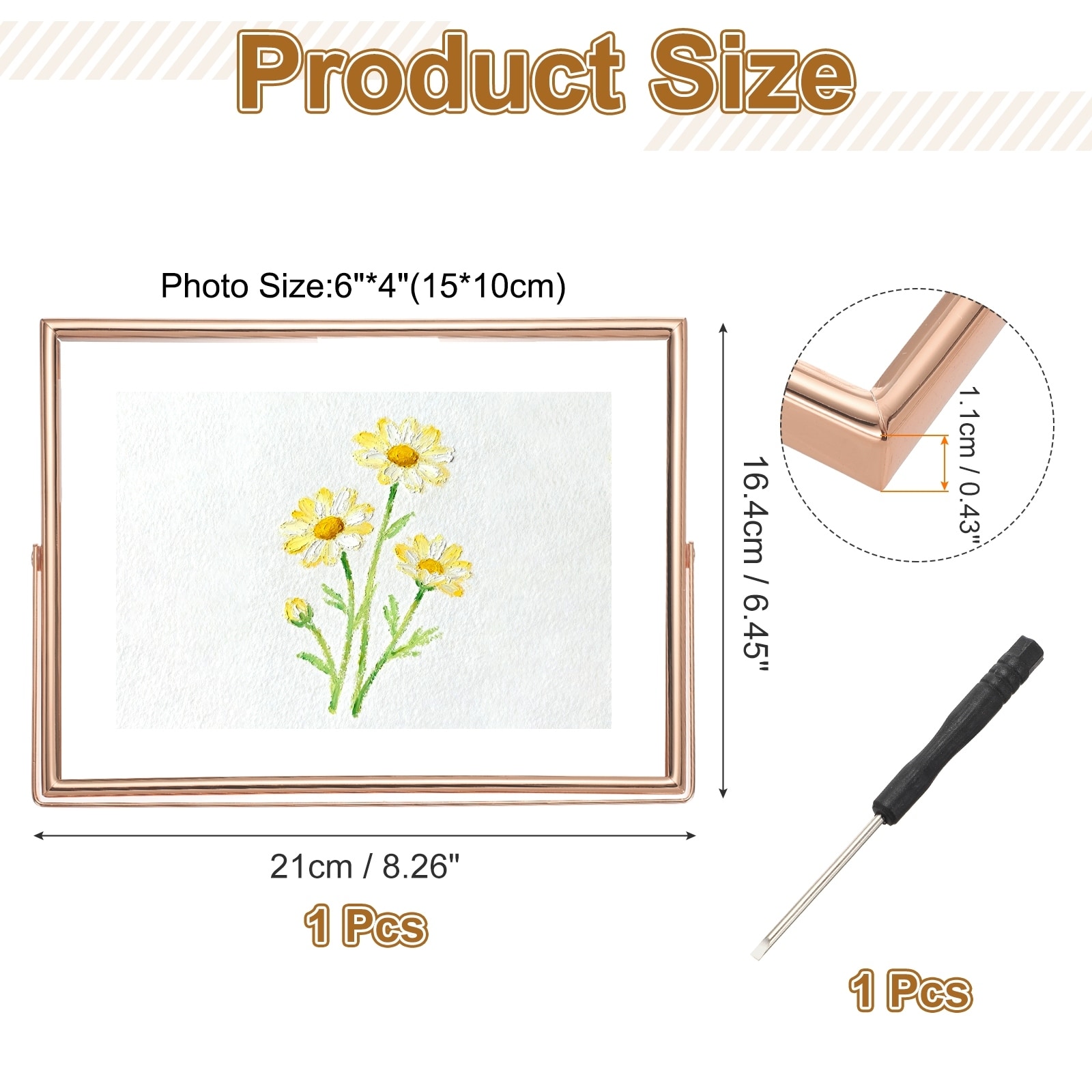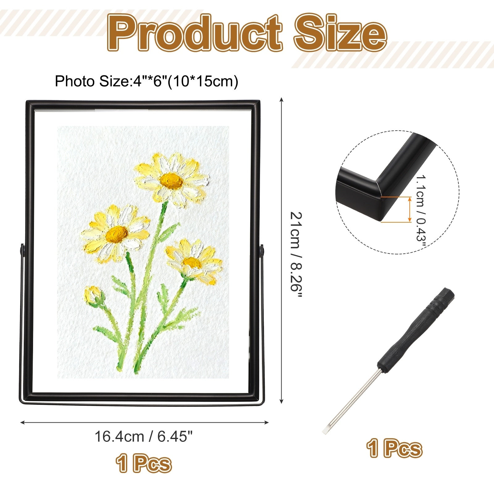 Floating Frame, Metal Edge Photo Frame for Adjustable Tabletop/Shelf Floating Picture Display, Classy Gift Choice for Wedding