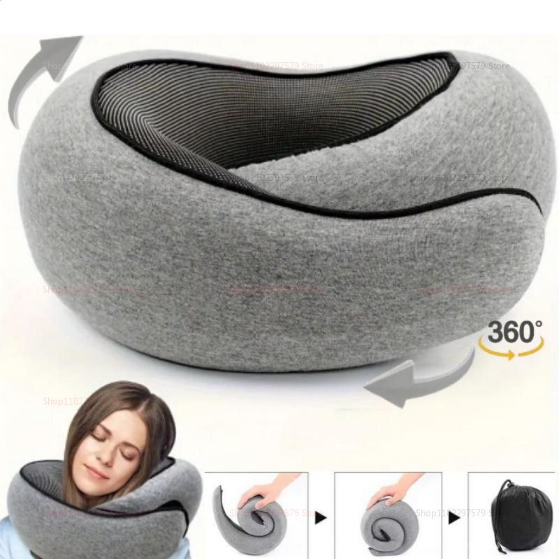 U Shaped Pillow, Travel Neck Pillow Memory Foam, Snail Pillow Soft, Travel Neck Support, Sleep Pillow For Flights grey