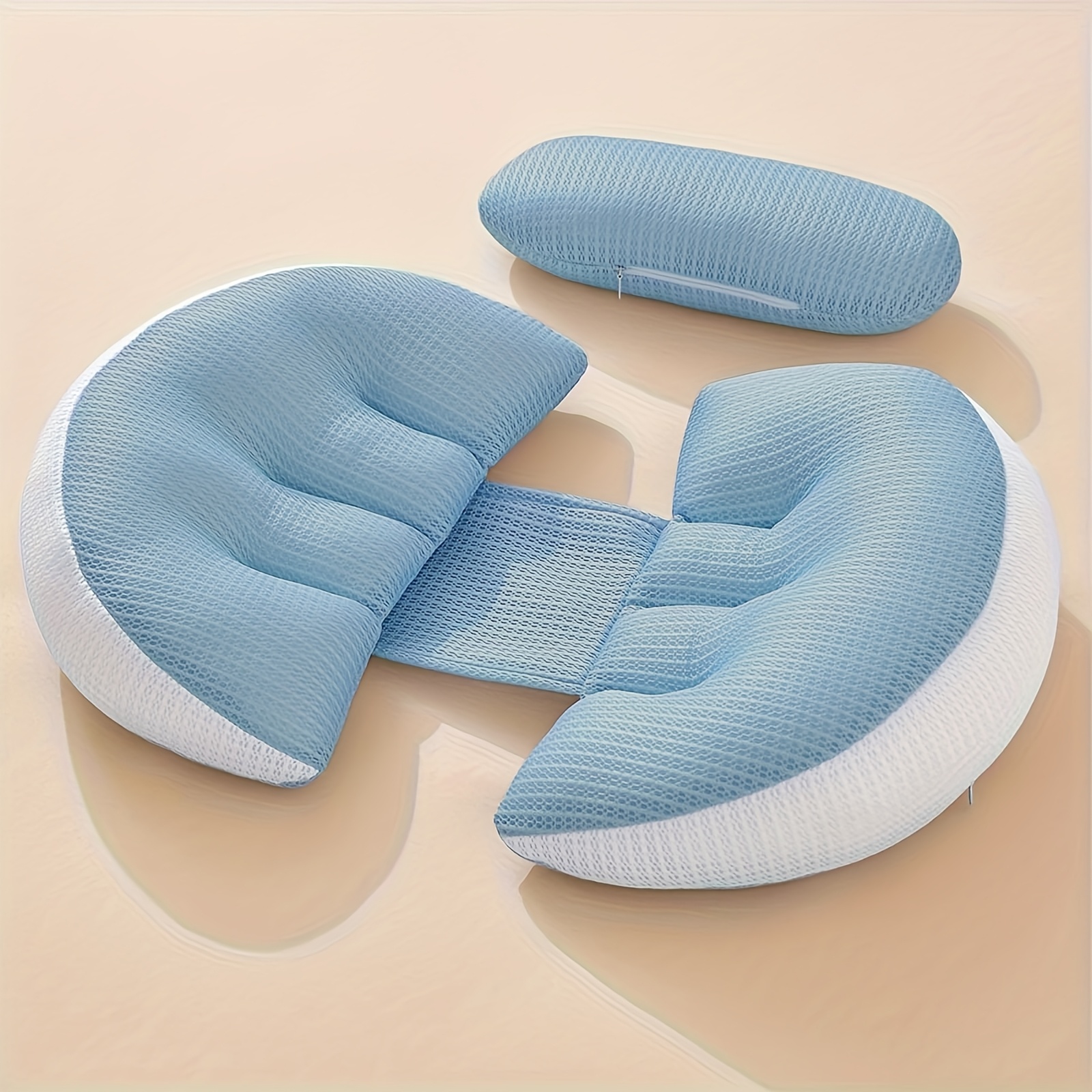 Adjustable U Shaped Maternity Pillow, Removable Cover, Soft Polyester Fiber, Comfortable Back And Belly Support blue Mesh
