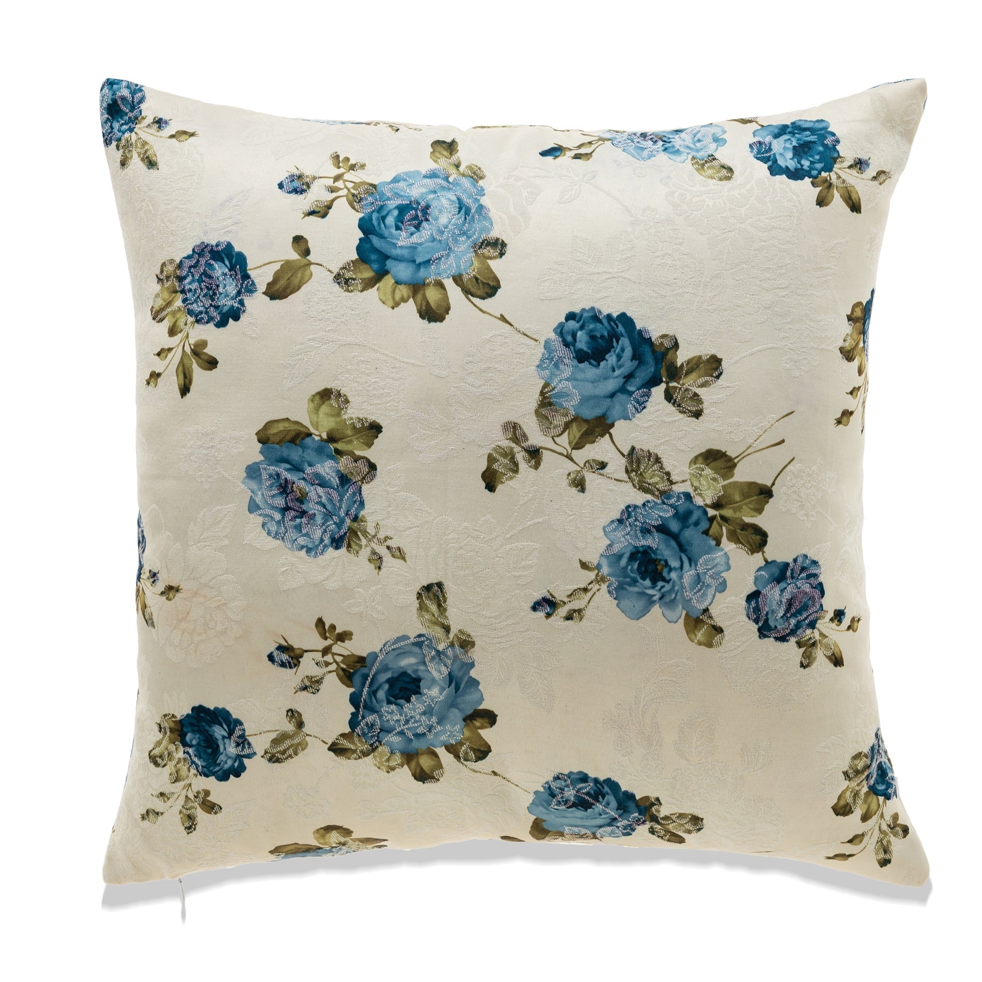 Square Blue And Brown Florals On Ivory Pillow Cover