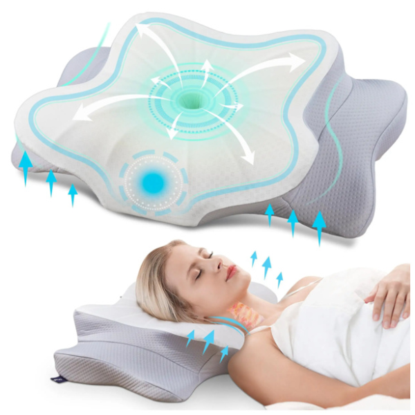 Butterfly Memory Foam Orthopedic Pillow Cervical Neck Support With Slow Rebound For Pain Relief & Better Sleep white 19.69x11.81in