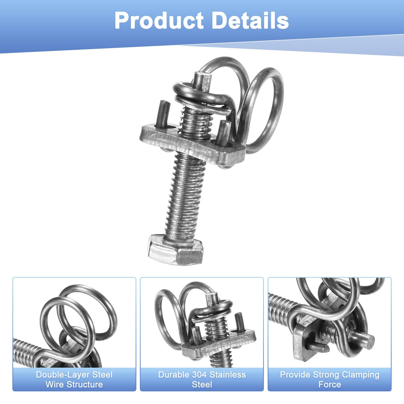 Double Wire Hose Clamp, Stainless Steel Hose Clips Pipe Tube Clamps with Bolt Adjustable for Dust Collection Hose - Silver