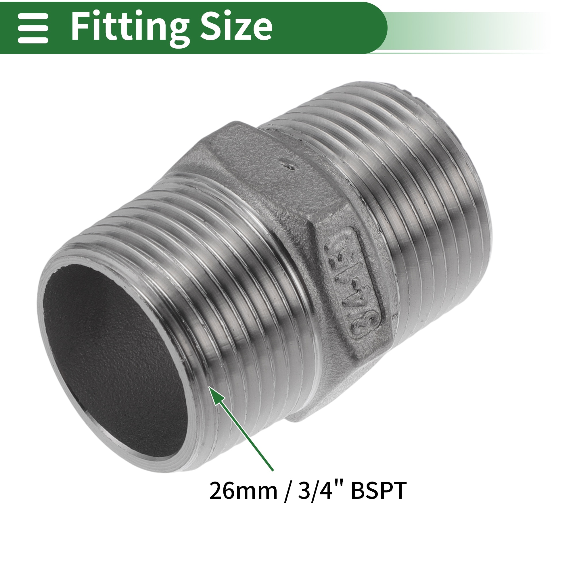 304 Stainless Steel Pipe Fittings 1/8"BSPT Male Hex Nipple Adapter - Silver Tone