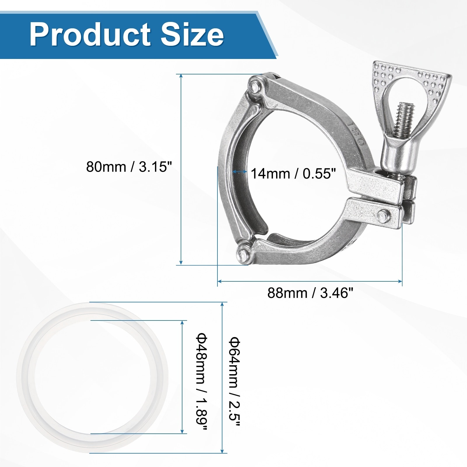 Stainless Steel Sanitary Single Pin Tri Pipe Clamp 2" with Silicone Gasket - Silver Tone