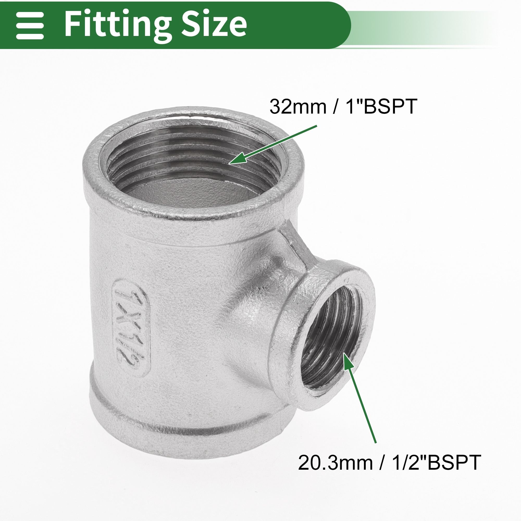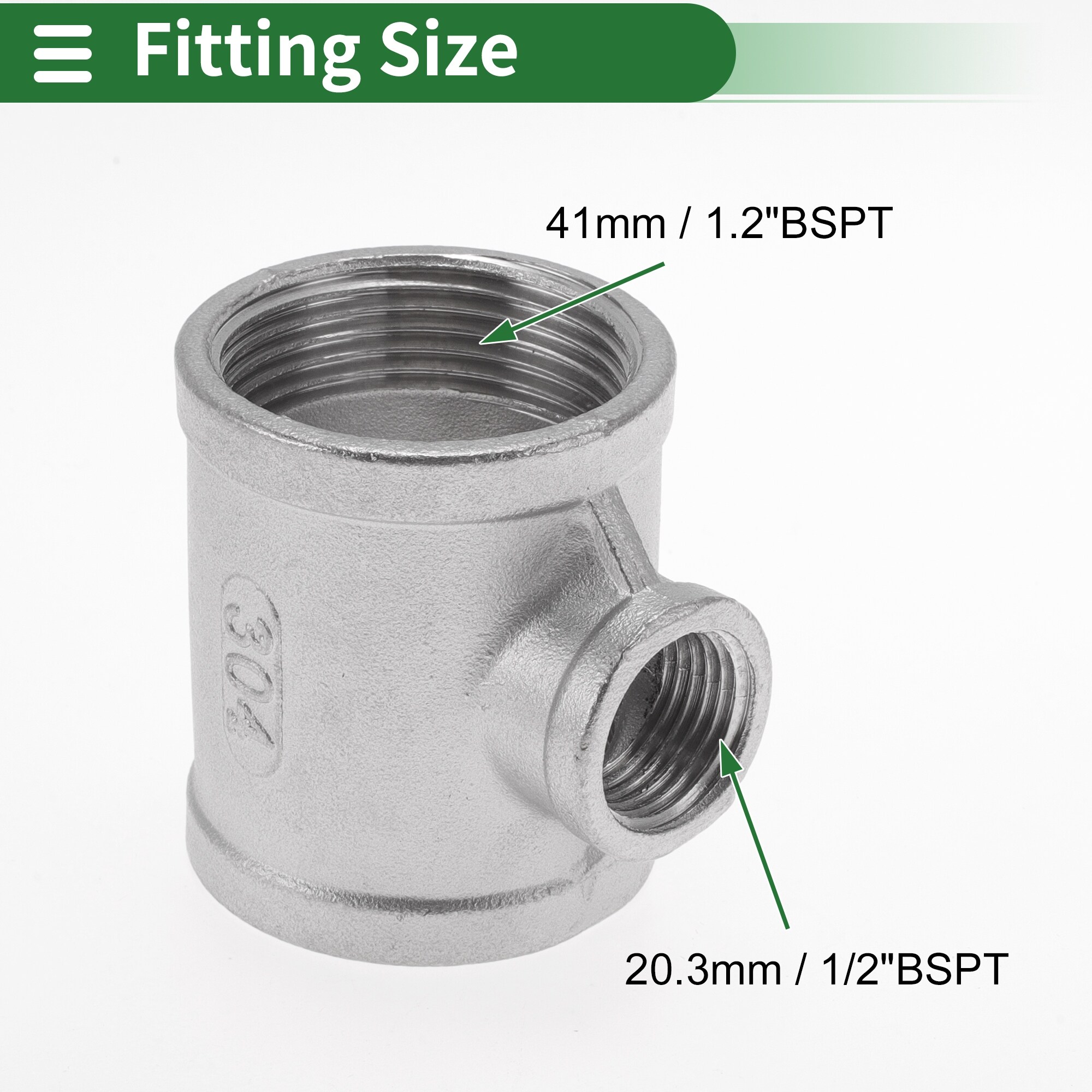 304 Stainless Steel Pipe Fittings Female Tee Type Pipe Adapter 2 Pcs - Silver Tone