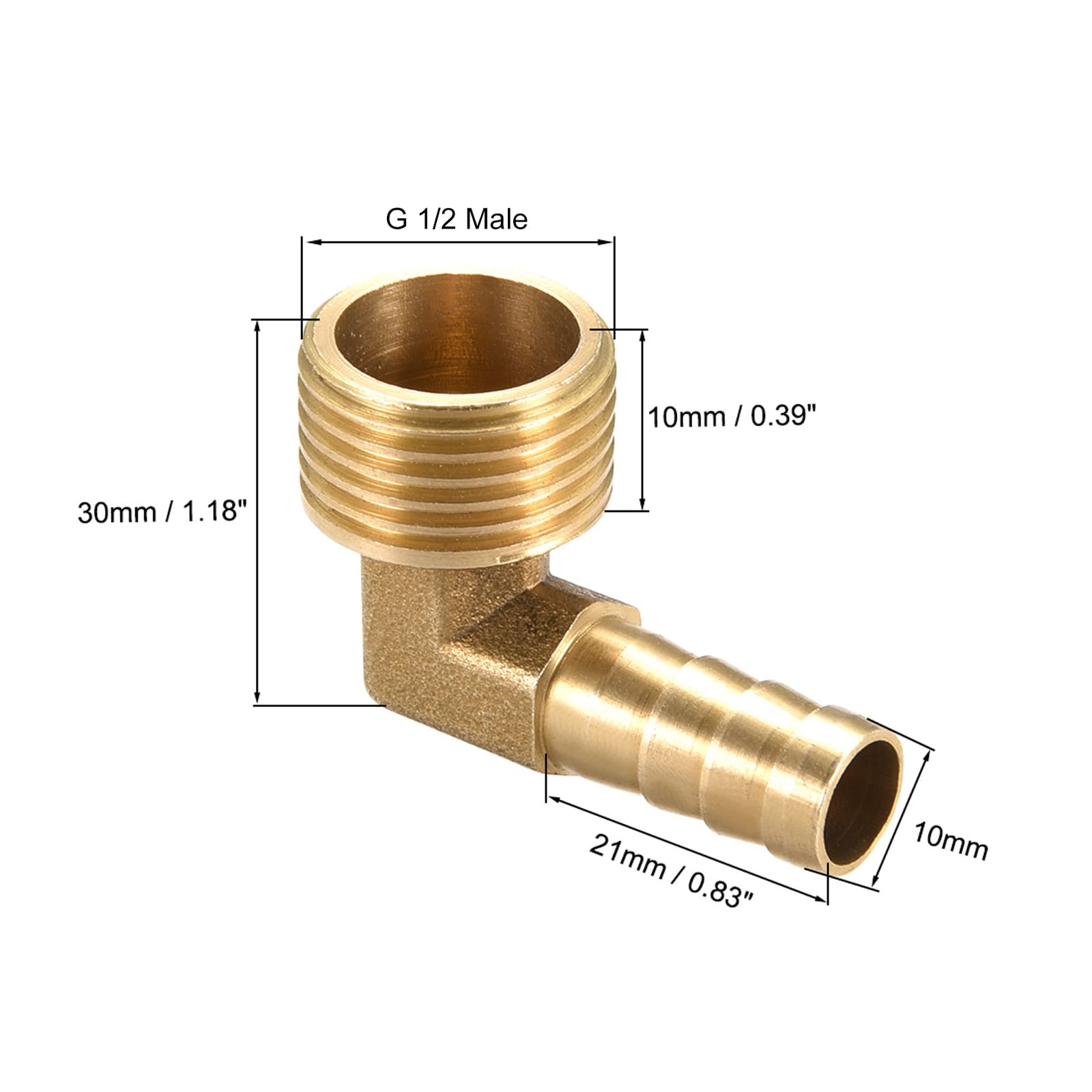 Brass Barb Hose Fitting 90 Degree Elbow Barbed to G Male Pipe Adapter Connector - Copper Color