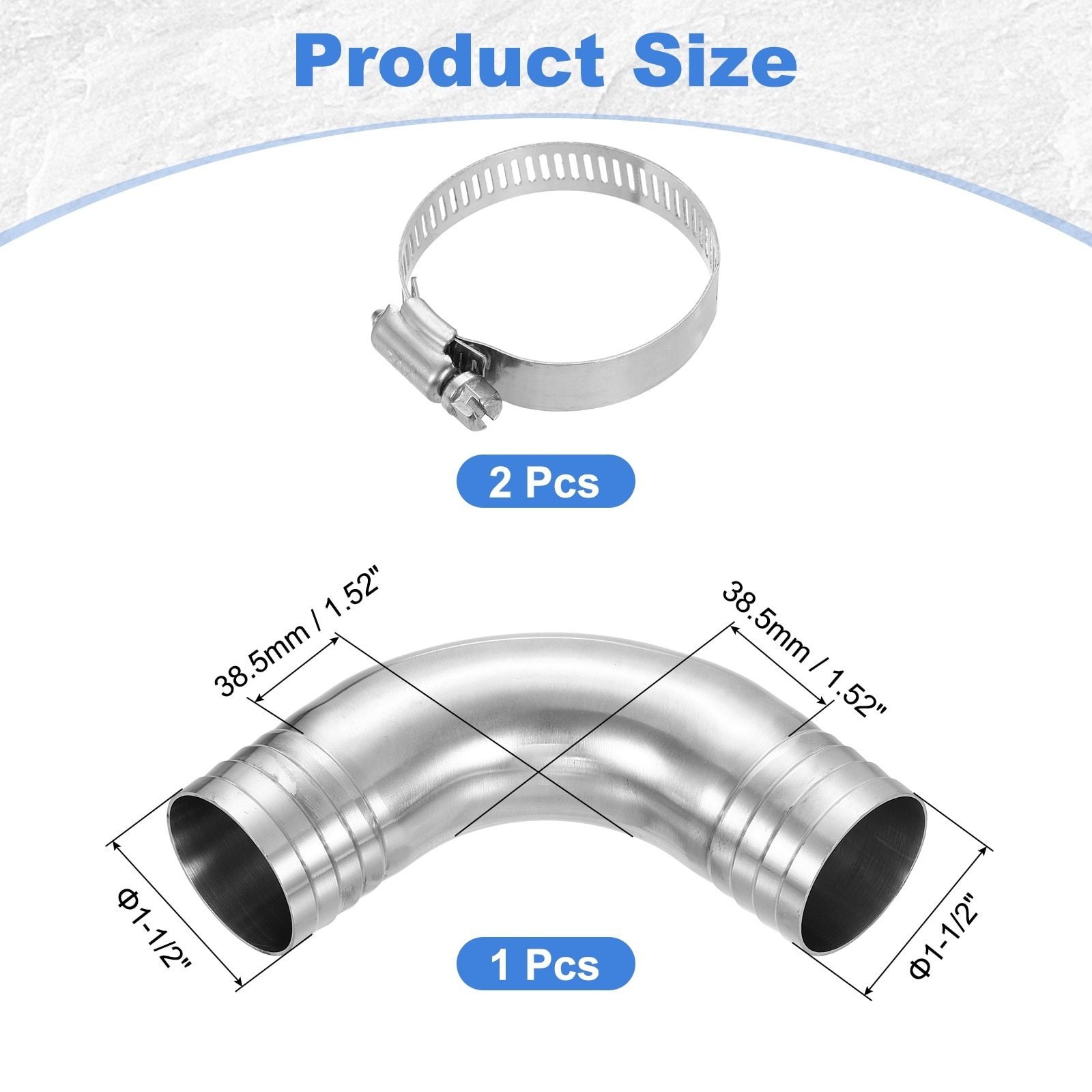 1/2" Barbed x 1/2" Barbed Sanitary Hose Barb 90 Degree Elbow Fitting with Clamps - Silver