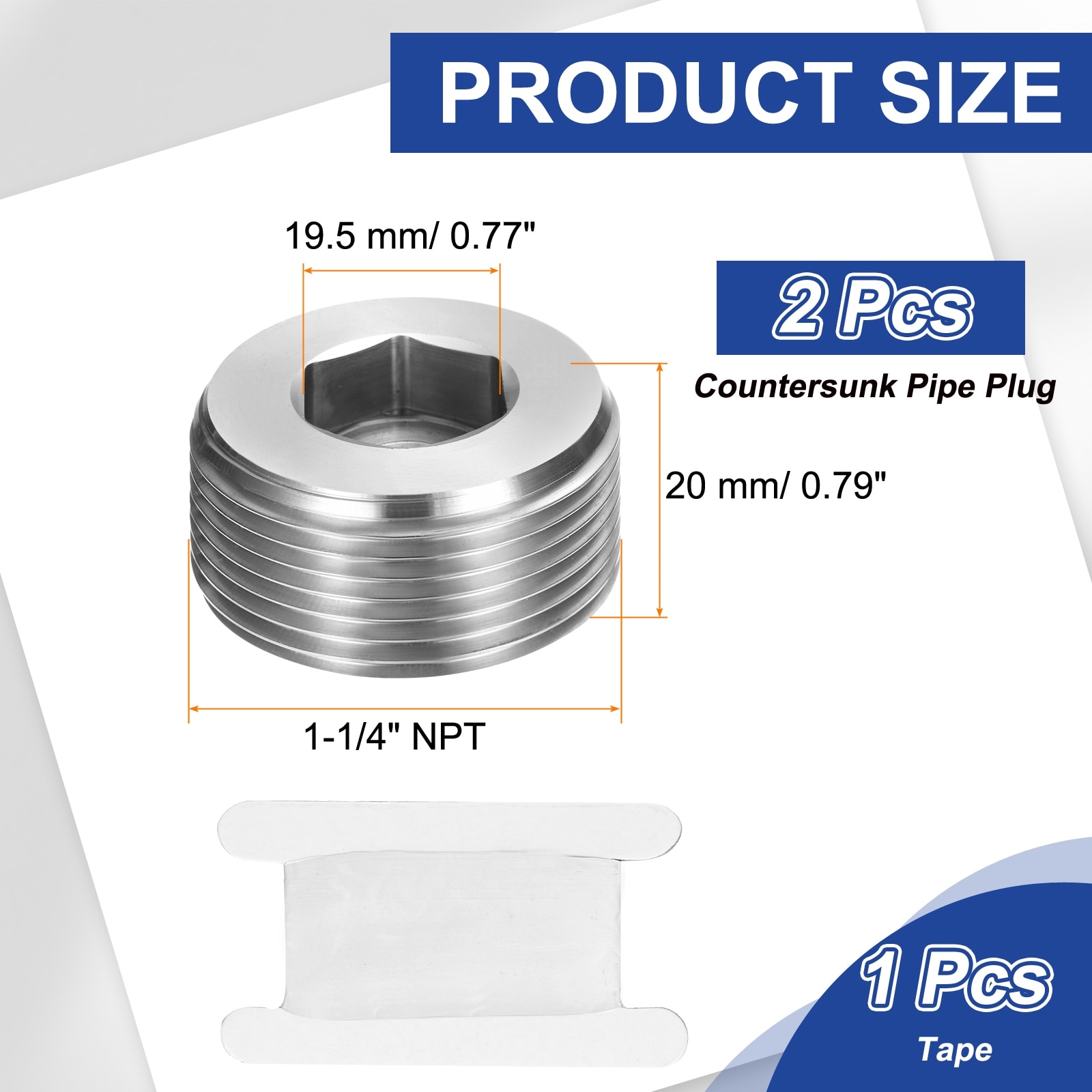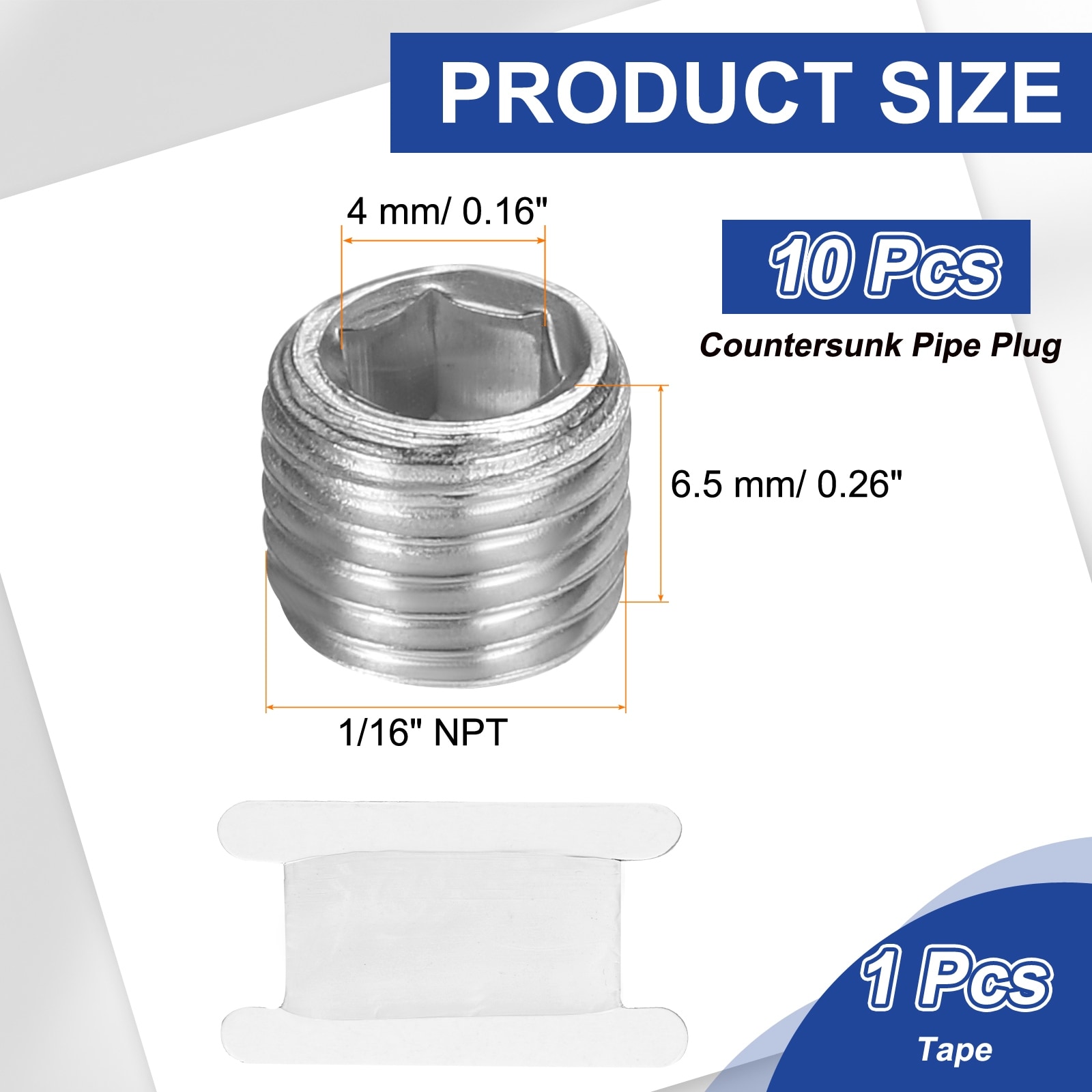 Stainless Steel Pipe Plug NPT Male Hex Internal Socket - Silver