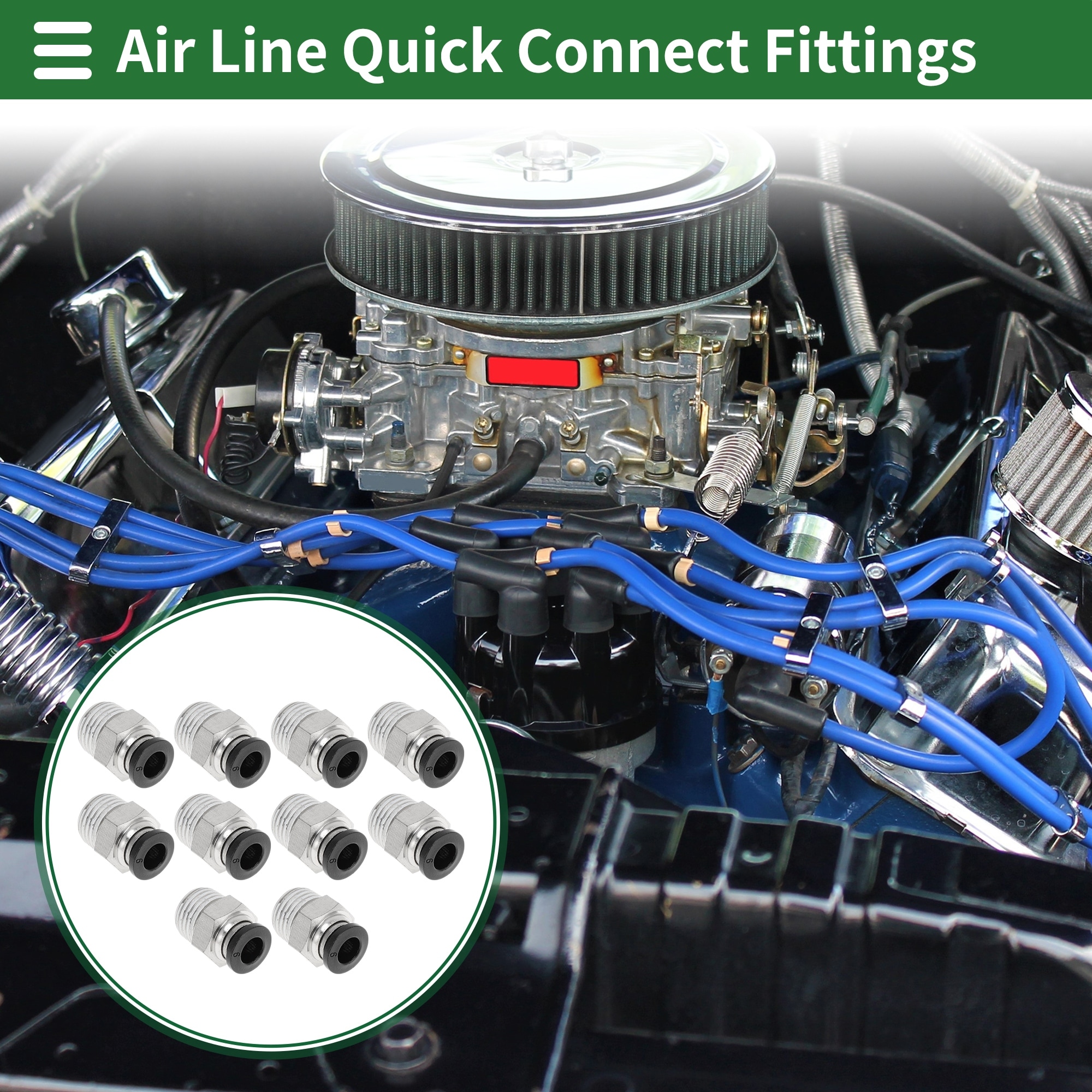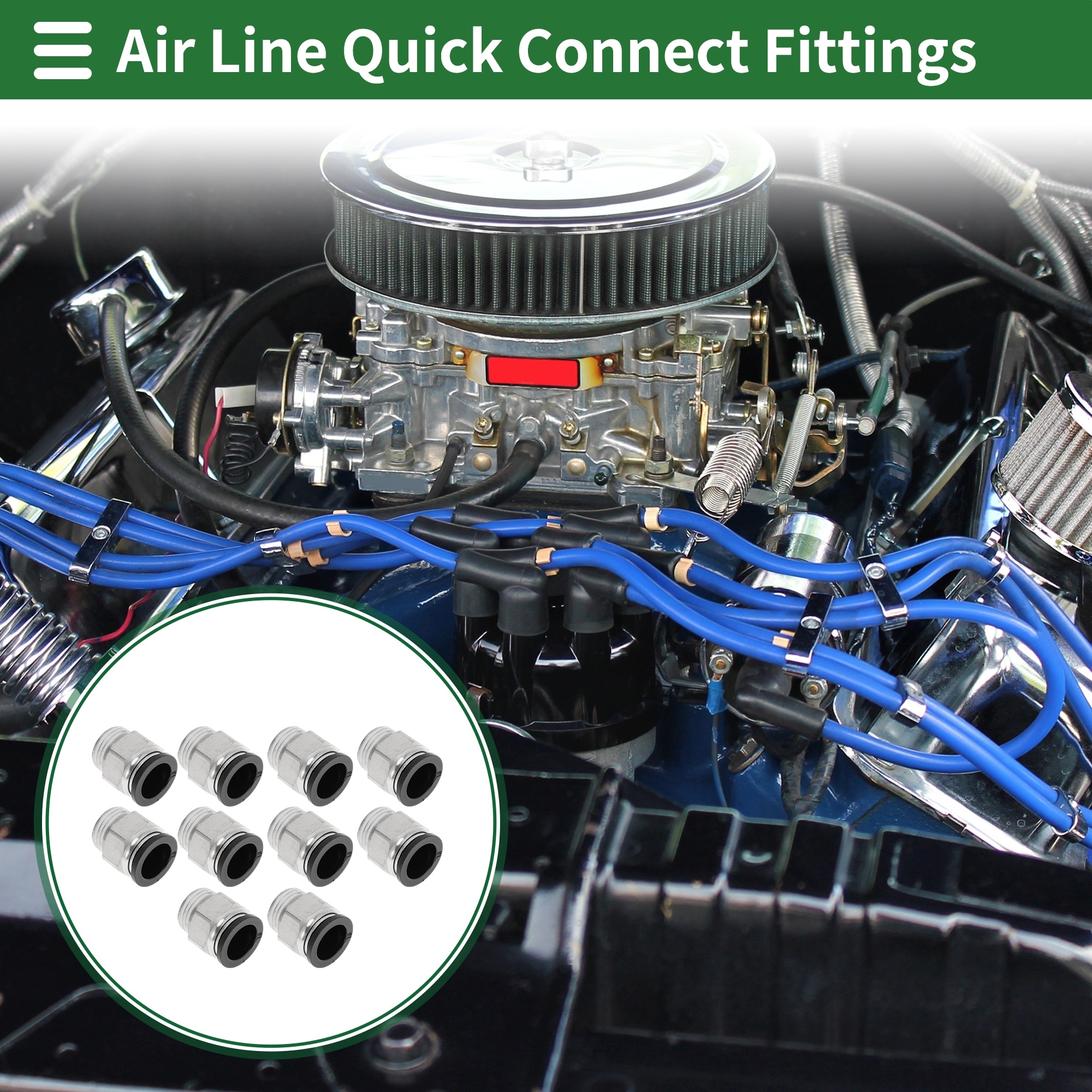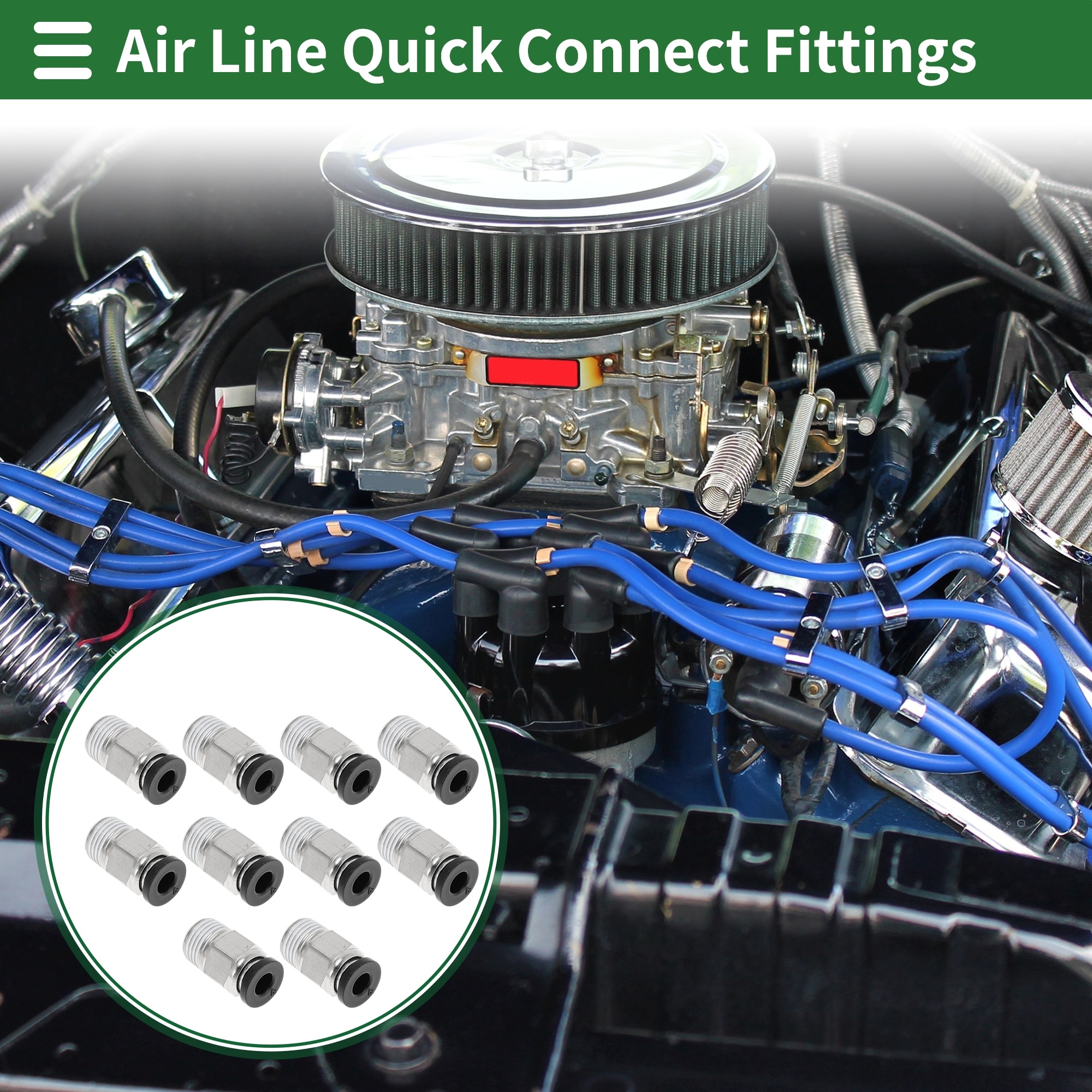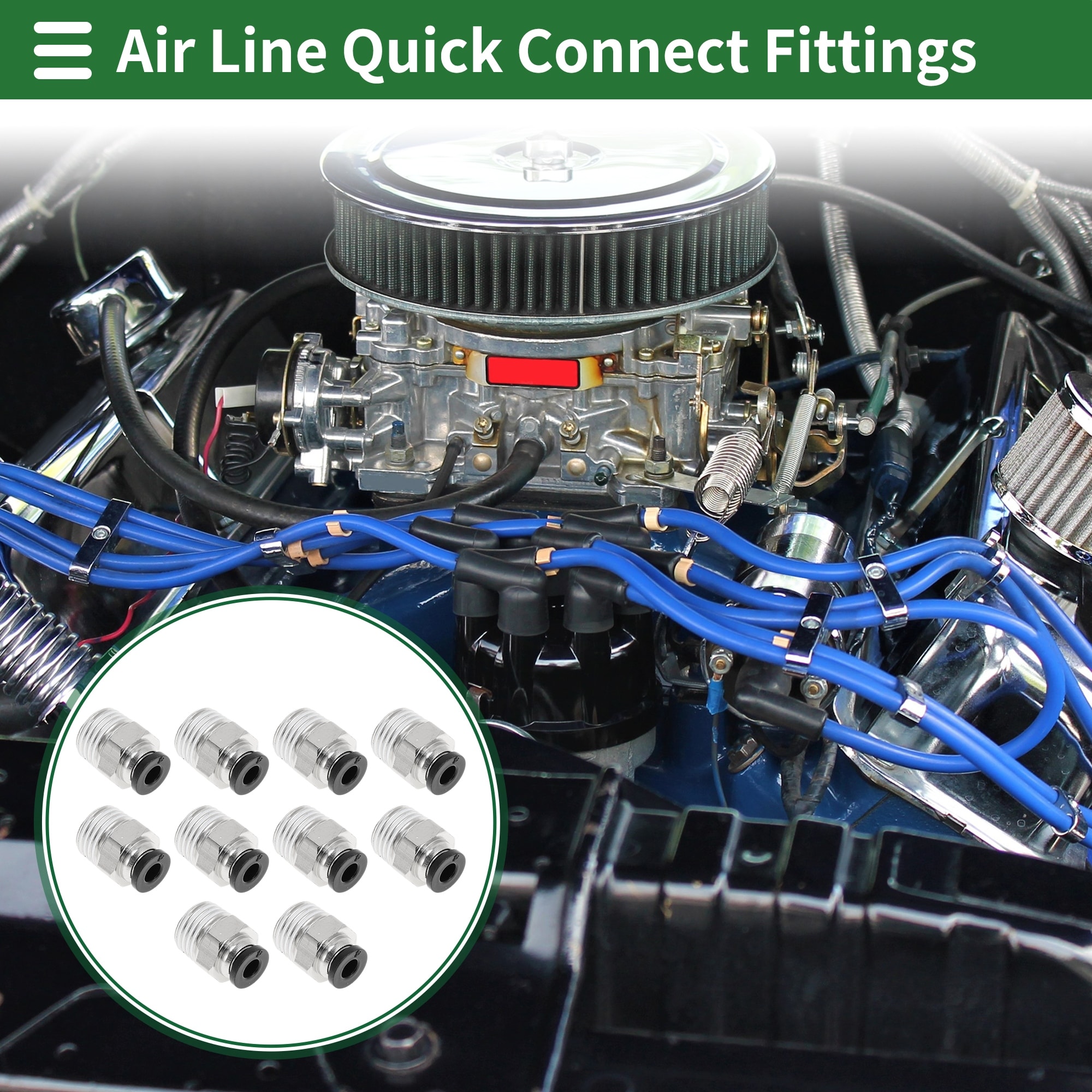Push to Connect Air Fittings 5/32" Male Thread Air Line Quick Connector Plastic Metal 1/8"BSPT 10 Pcs