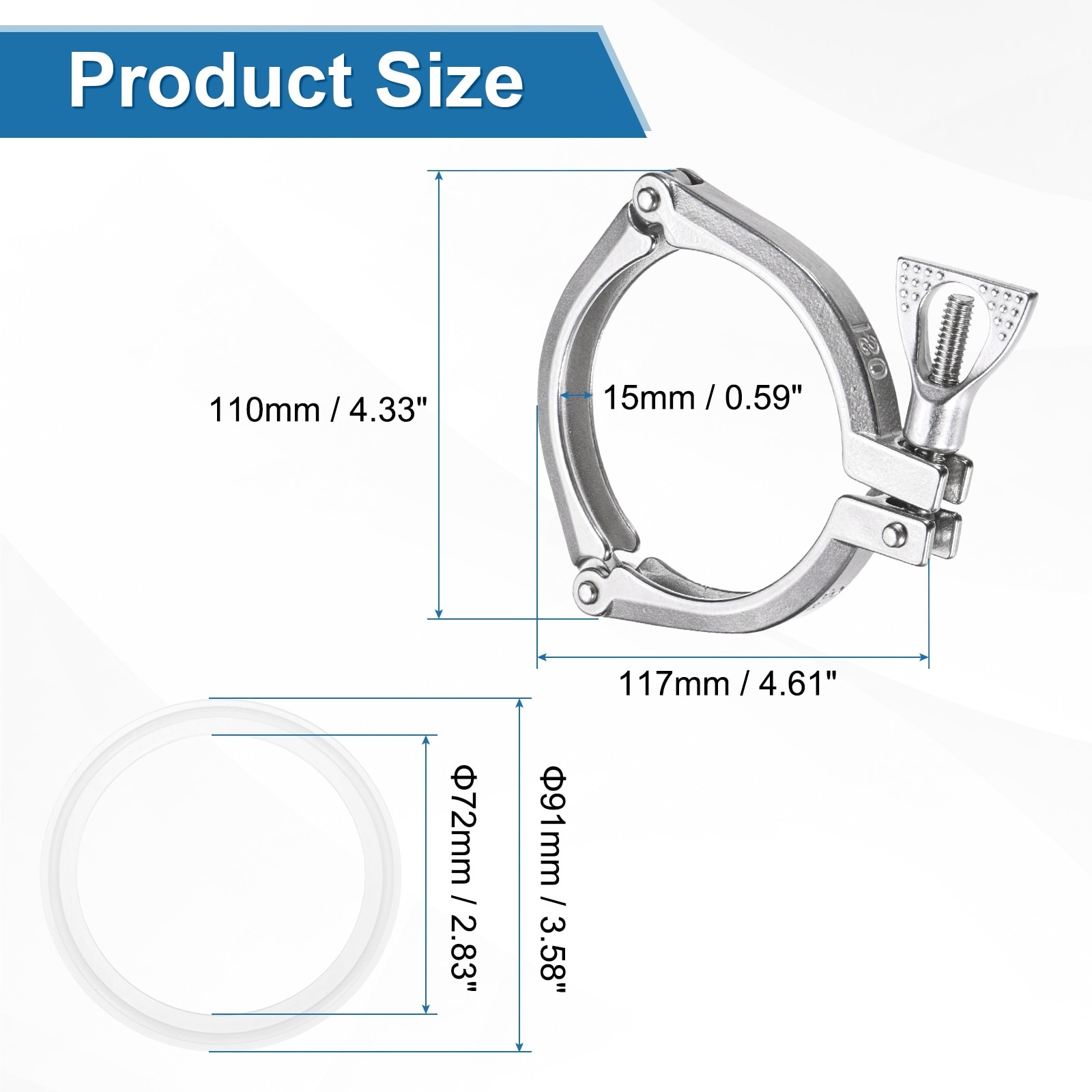 Stainless Steel Sanitary Single Pin Tri Pipe Clamp 2" with Silicone Gasket - Silver Tone