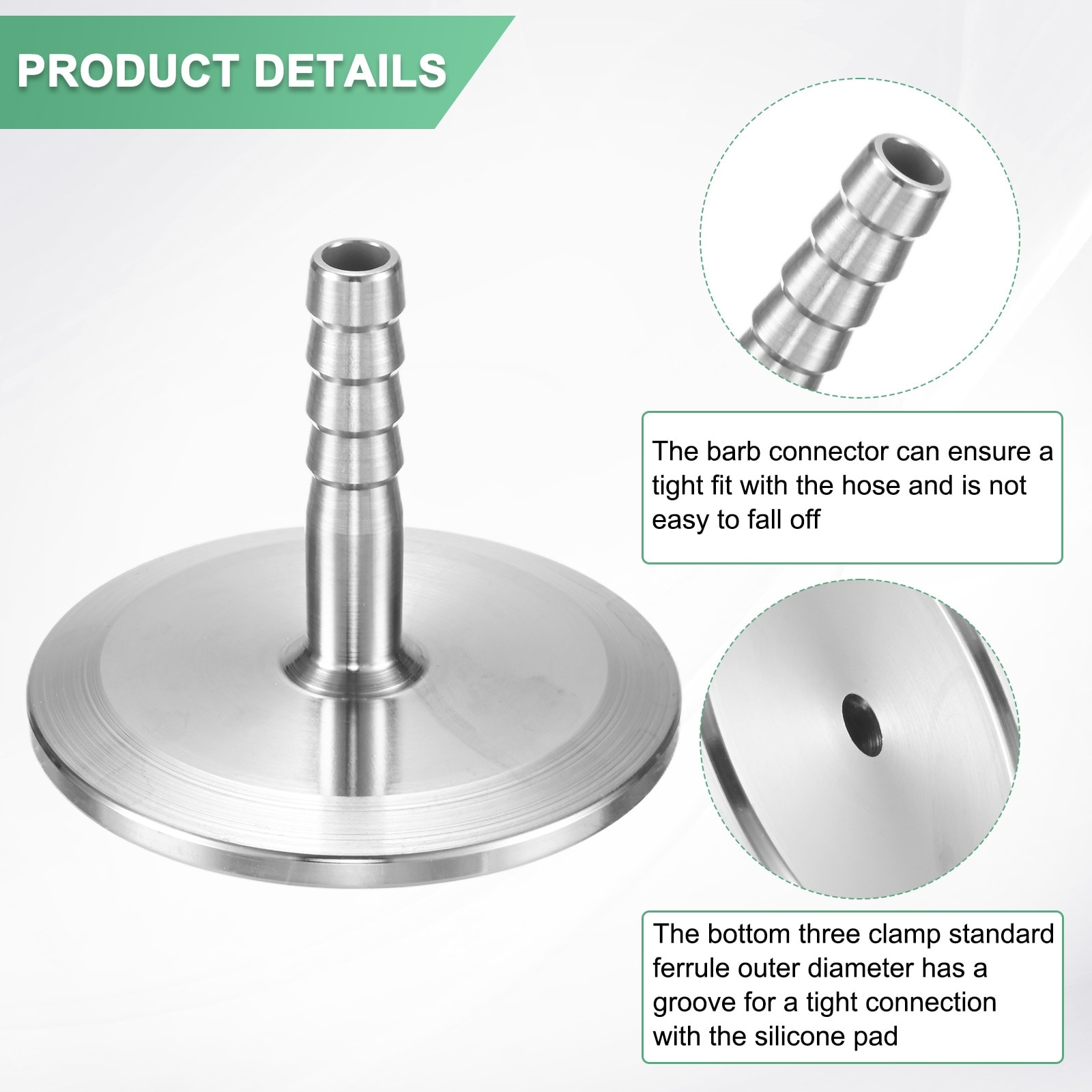 Tri Sanitary Clamp Barbed Fittings Hose Adapter Stainless Steel Pipe Fitting for Food/Beverage/Home Brew Adapter