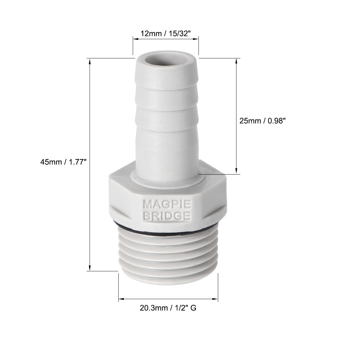 Barb Hose Fitting Connector Adapters Barbed x Male Pipe - Grey