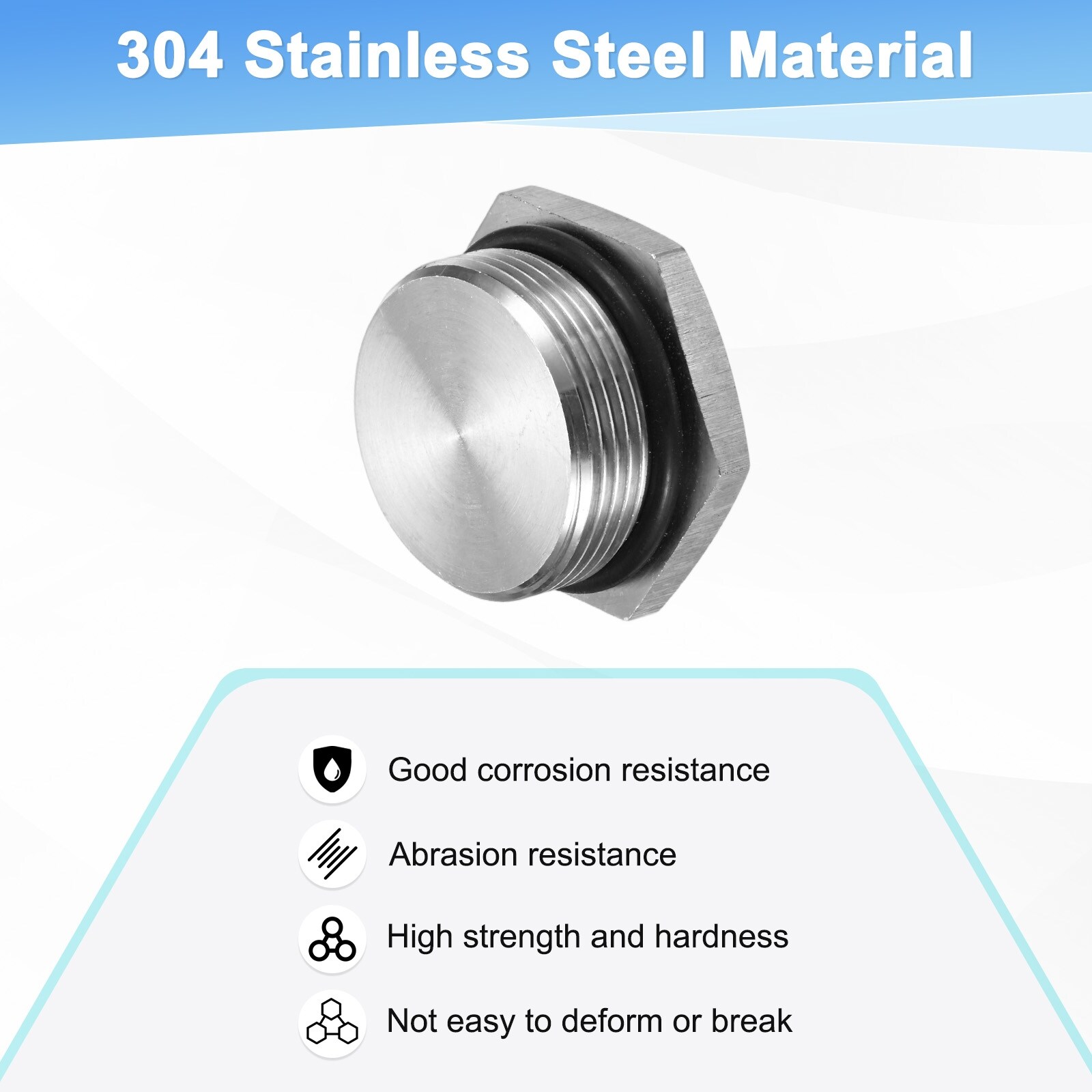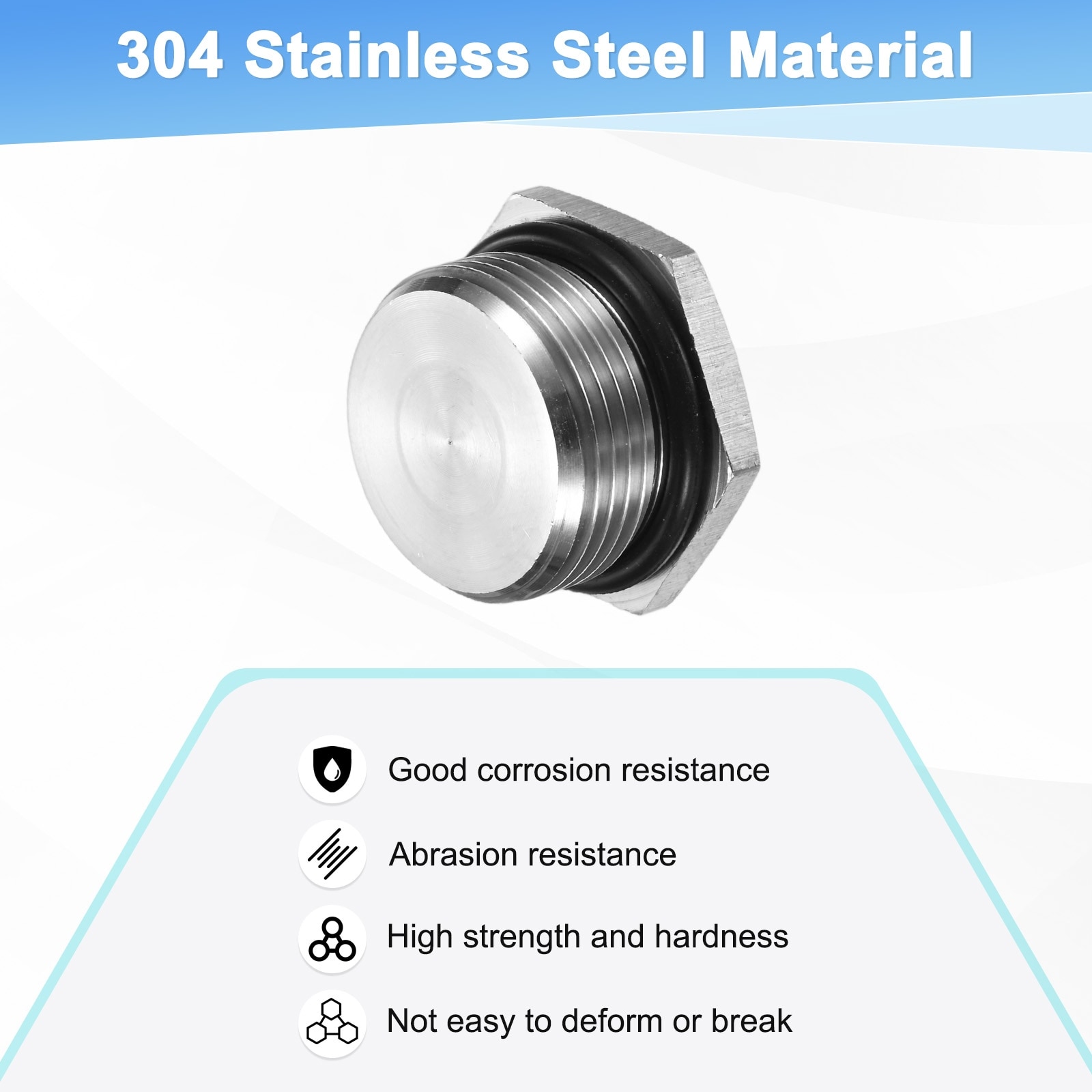 Outer Hex Head Thread Pipe Plug Fitting, 304 Stainless Steel Solid Thread Bung Plug with Sealing Ring - Silver