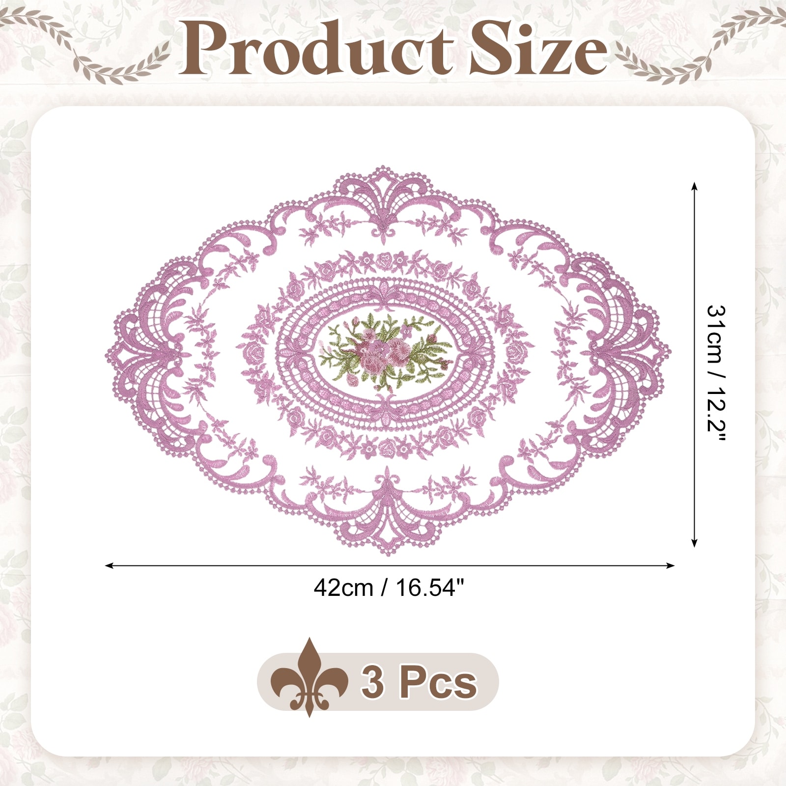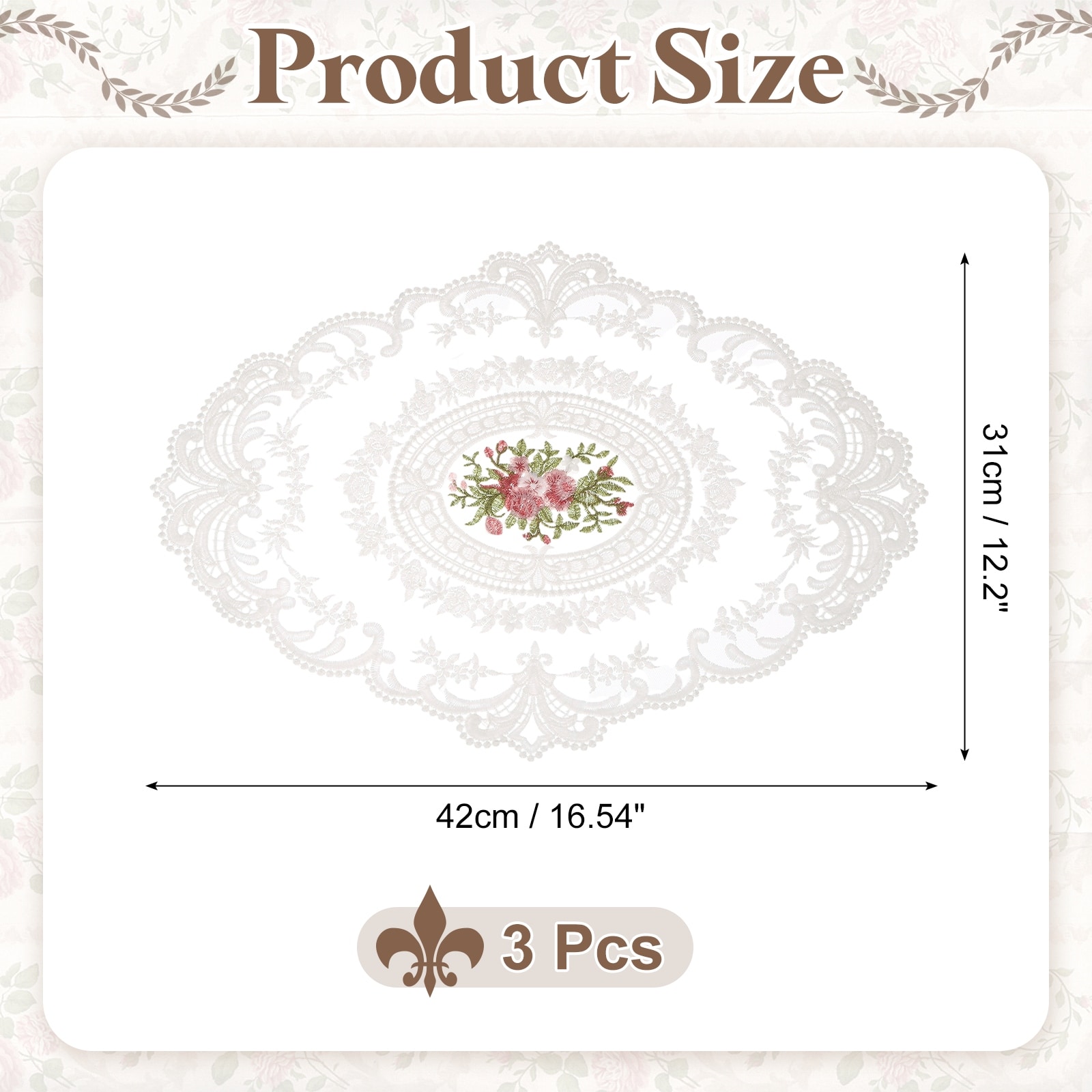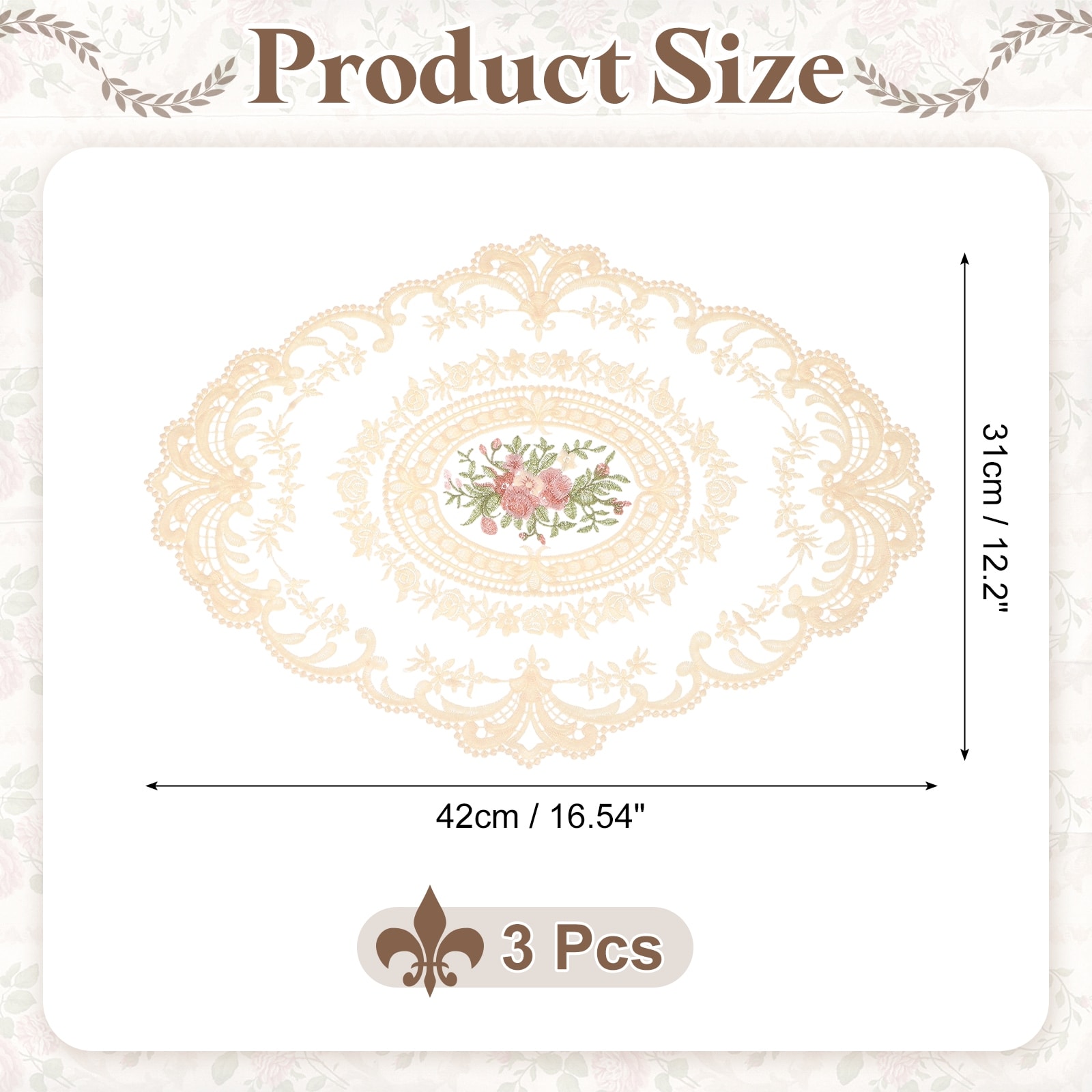 3 Pcs Retro Lace Placemats, 12x17-in Vintage Table Doilies