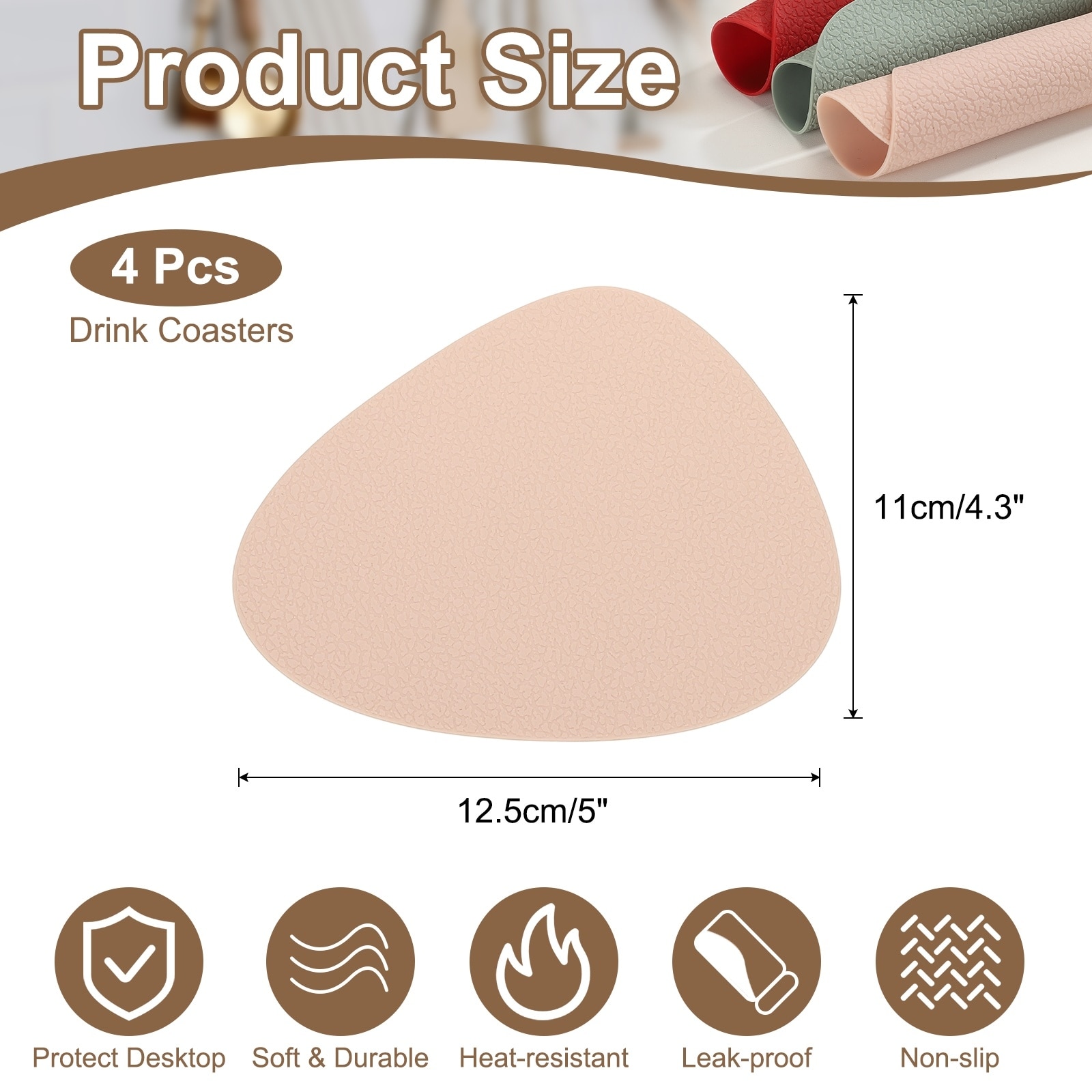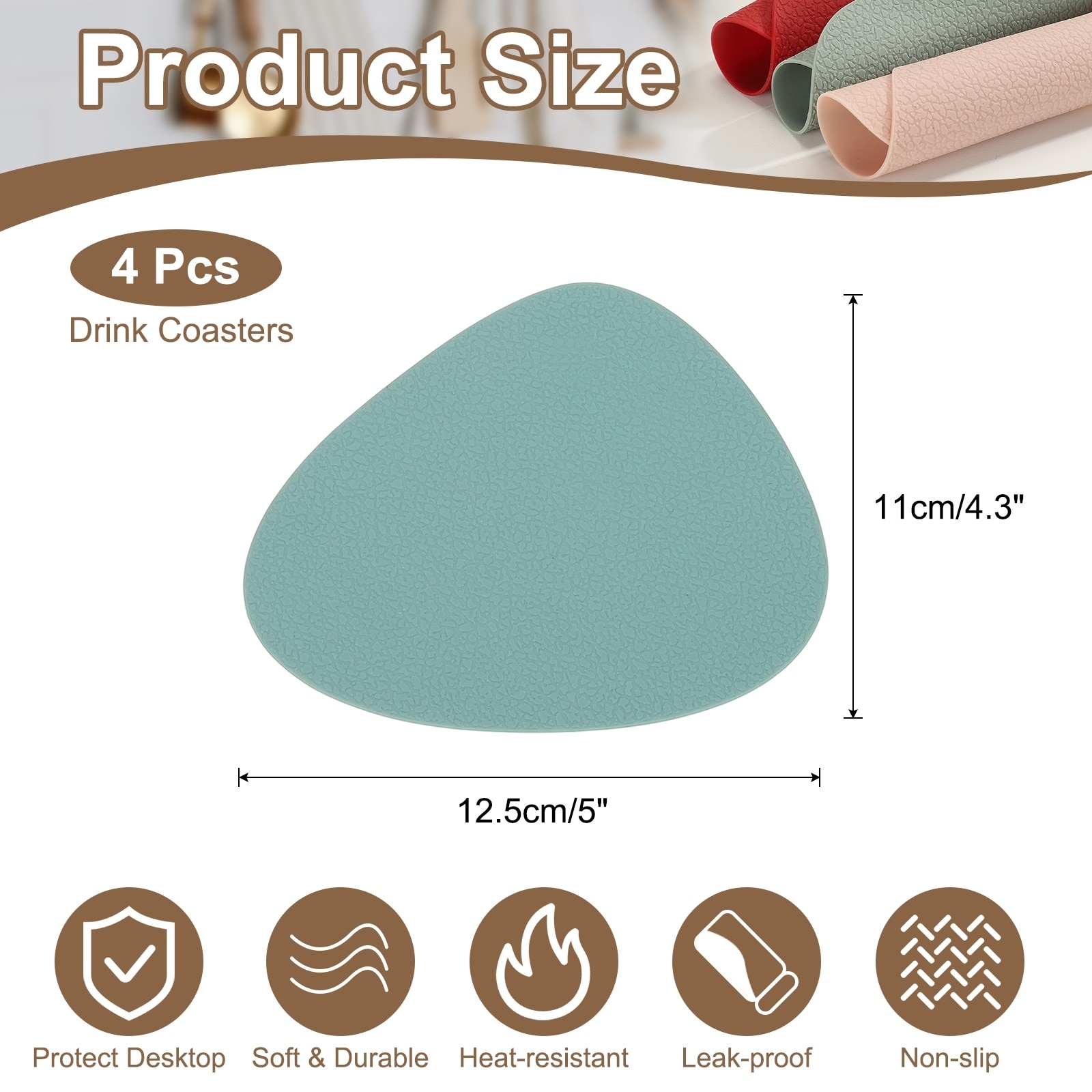 Silicone Coasters for Drinks, Non-Slip Protective Cup Coaster Heat Resistant Glass Cushion for Bar Kitchen Office Decor