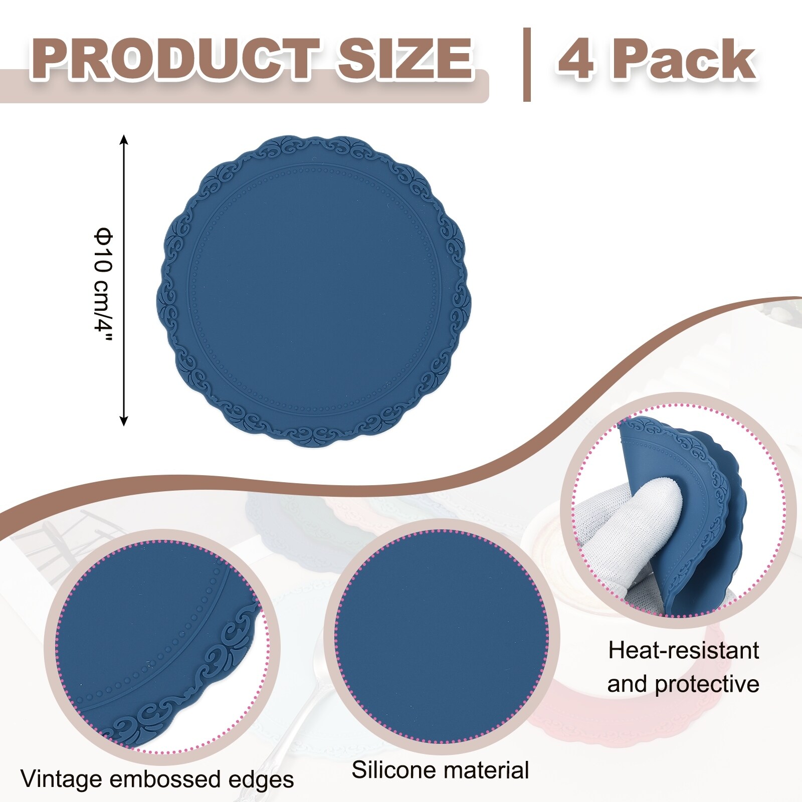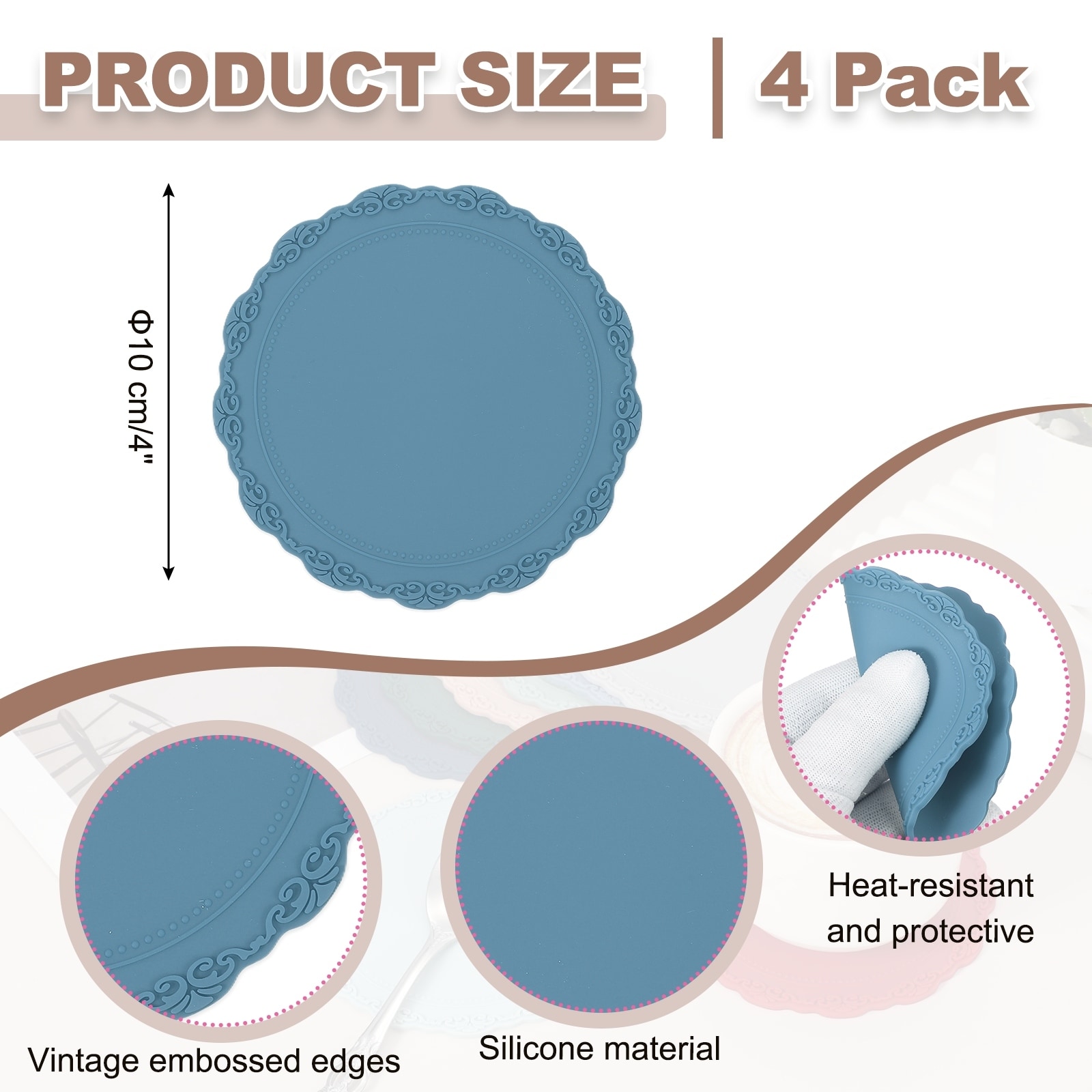 Round Silicone Coaster, Placemats Table Mats, Place Mats Trivet for Dining Table Heat Resistant Waterproof