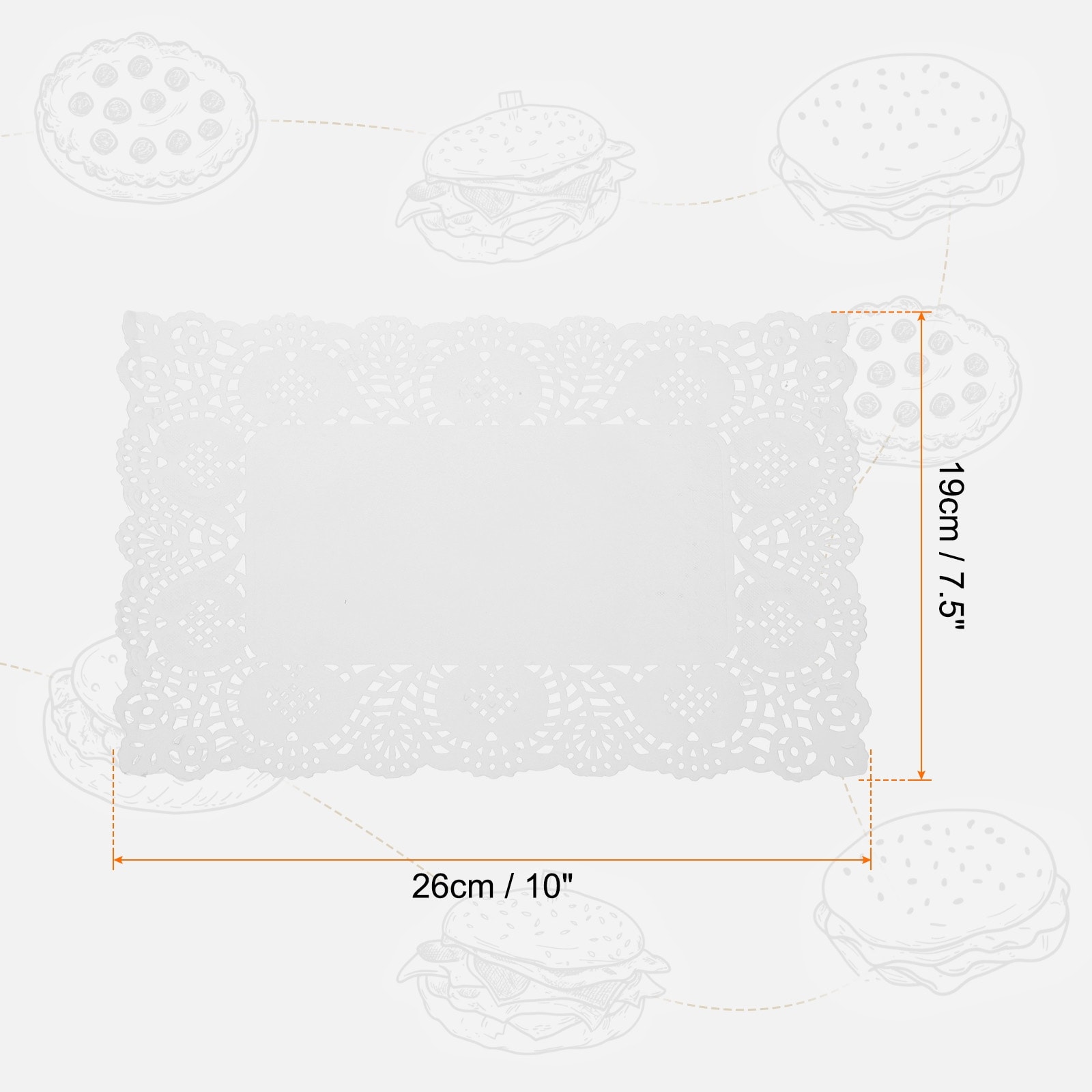 Lace Paper Doilies Rectangle Disposable Decorative Paper Placemats Hollow Flower Absorbing Papers for Cakes Desserts - white