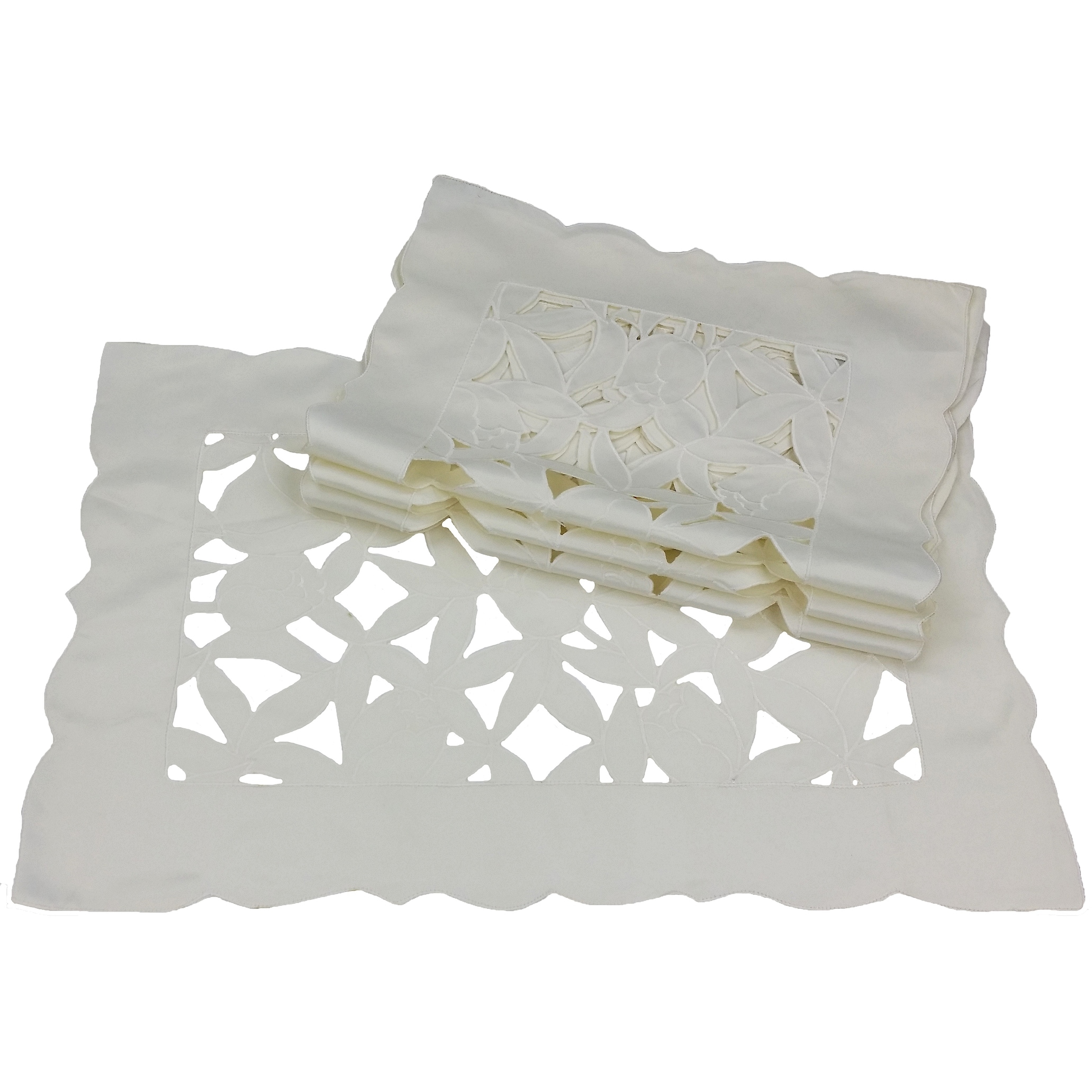 Cocoa Linen Embroidered Cutwork Round Placemat, 16-Inch diameter Table Linen Decor, Water Resistance, Machine Wash safe - 16"
