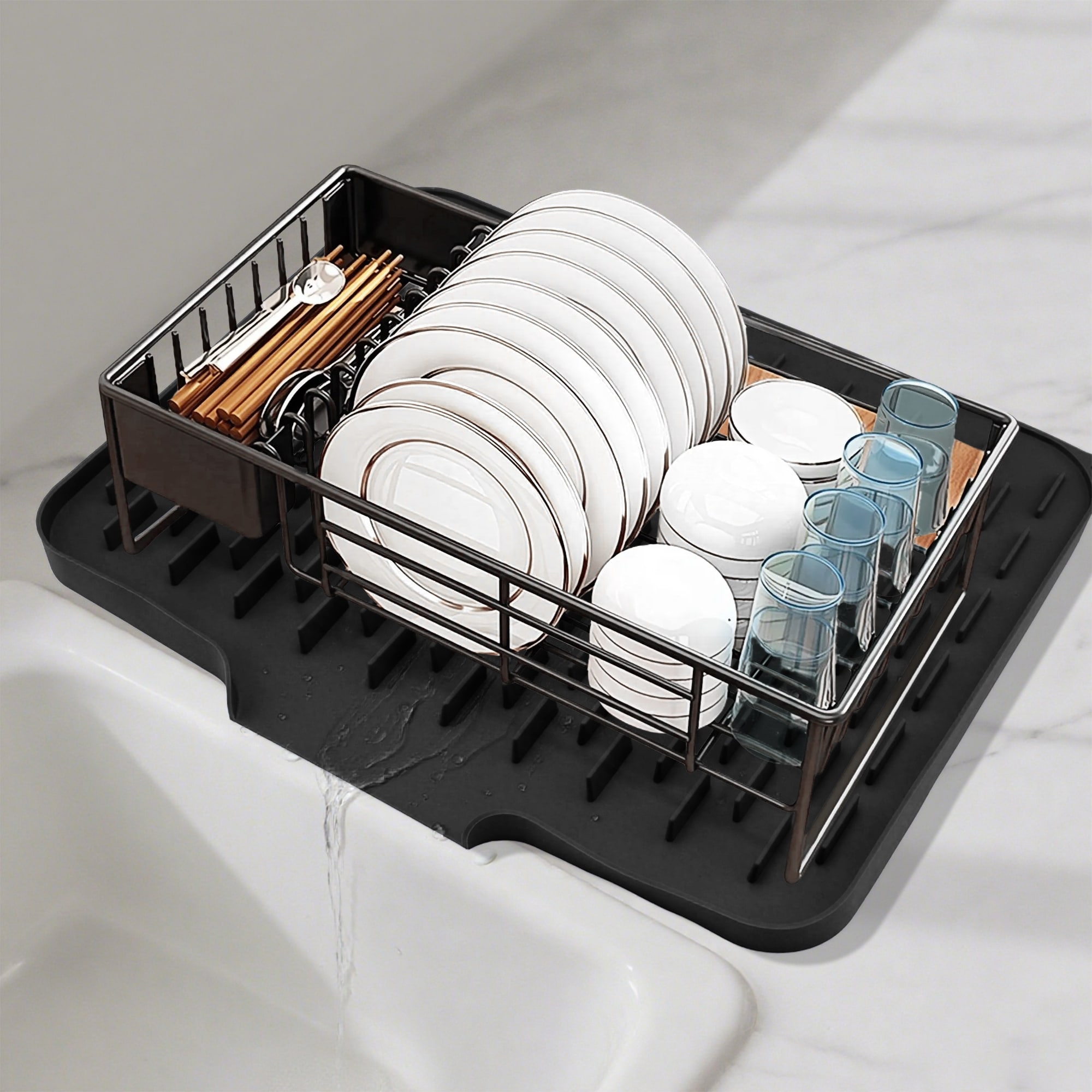 Silicone Dish Drying Mat for Kitchen Counter, Easy Clean Slope Design Kitchen Mat, Silicone Mat, Fits Under Dish Rack