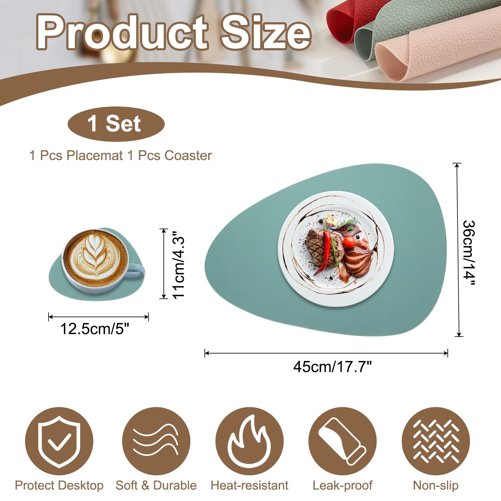 Silicone Placemats and Coasters, Non-Slip Waterproof Countertop Protectors, Teardrop Shape Heat Resistant Table Mats