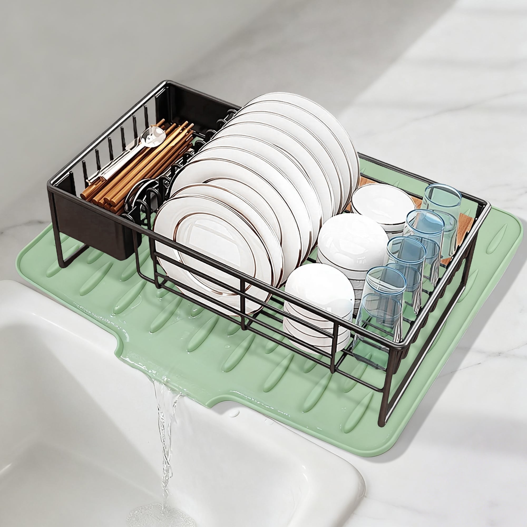Silicone Dish Drying Mat for Kitchen Counter, Easy Clean Waterproof Kitchen Mat, Fits Under Dish Rack 15.7x12.6x0.5 Inch