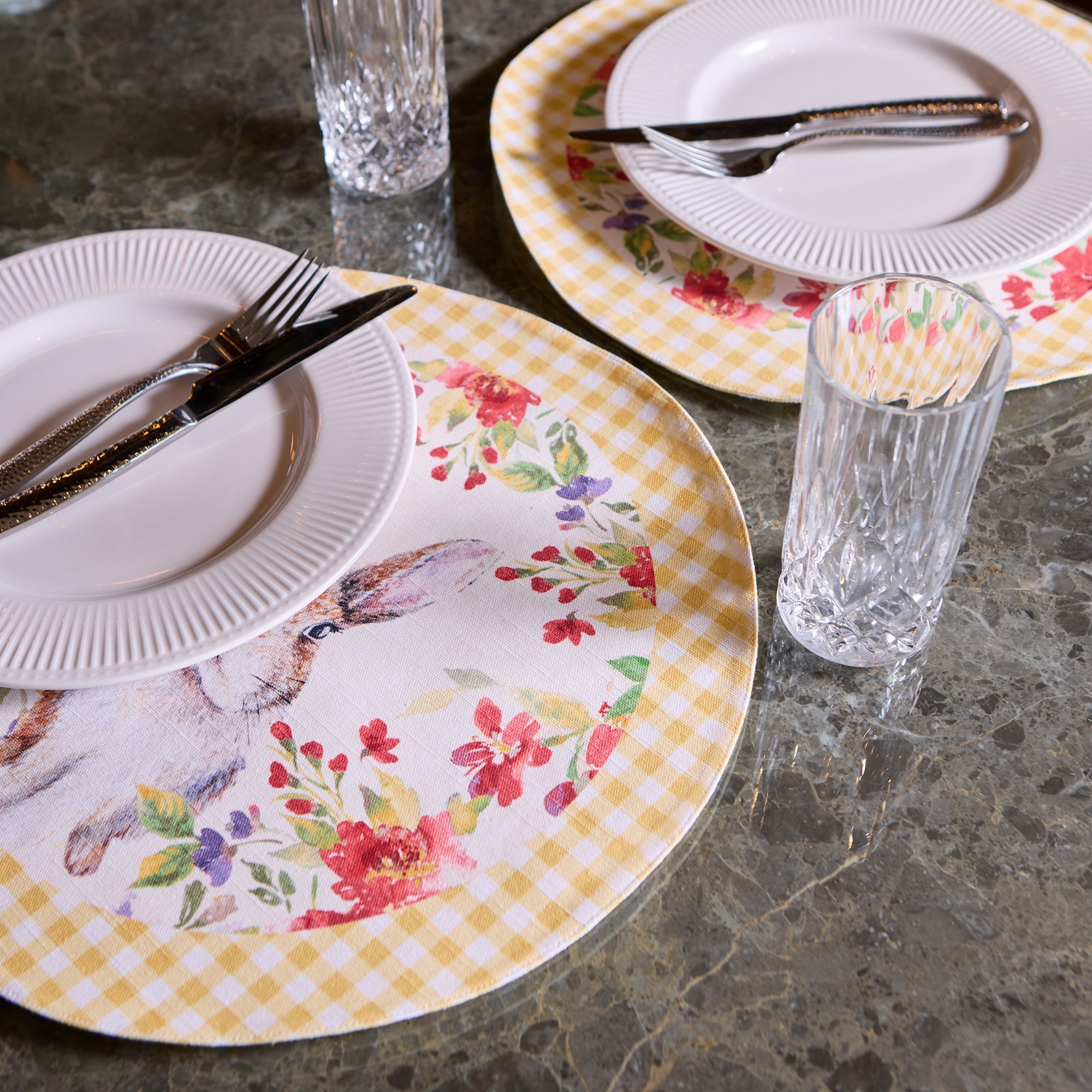 Meadow Bunny 100% Cotton Printed 2Pk Round Placemat