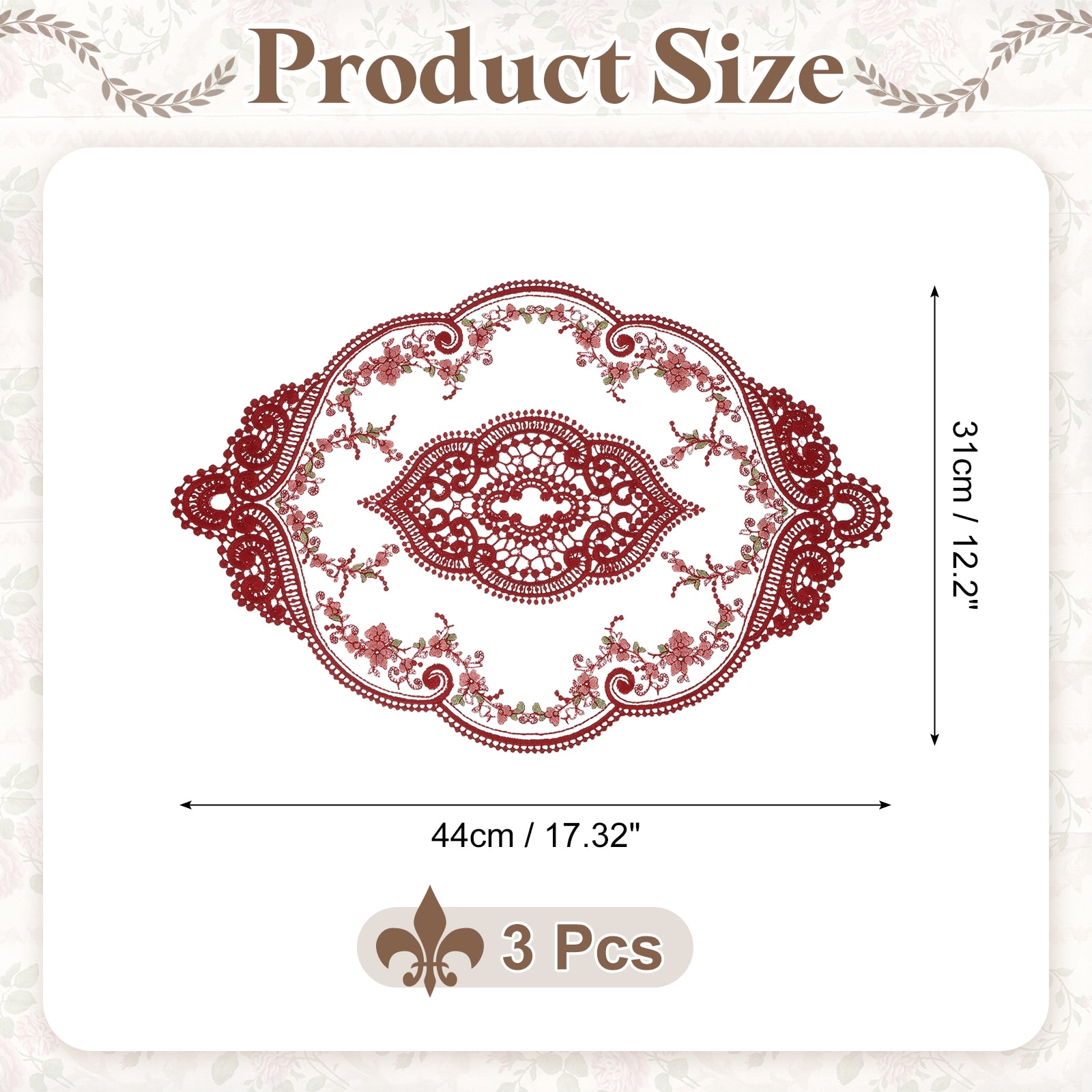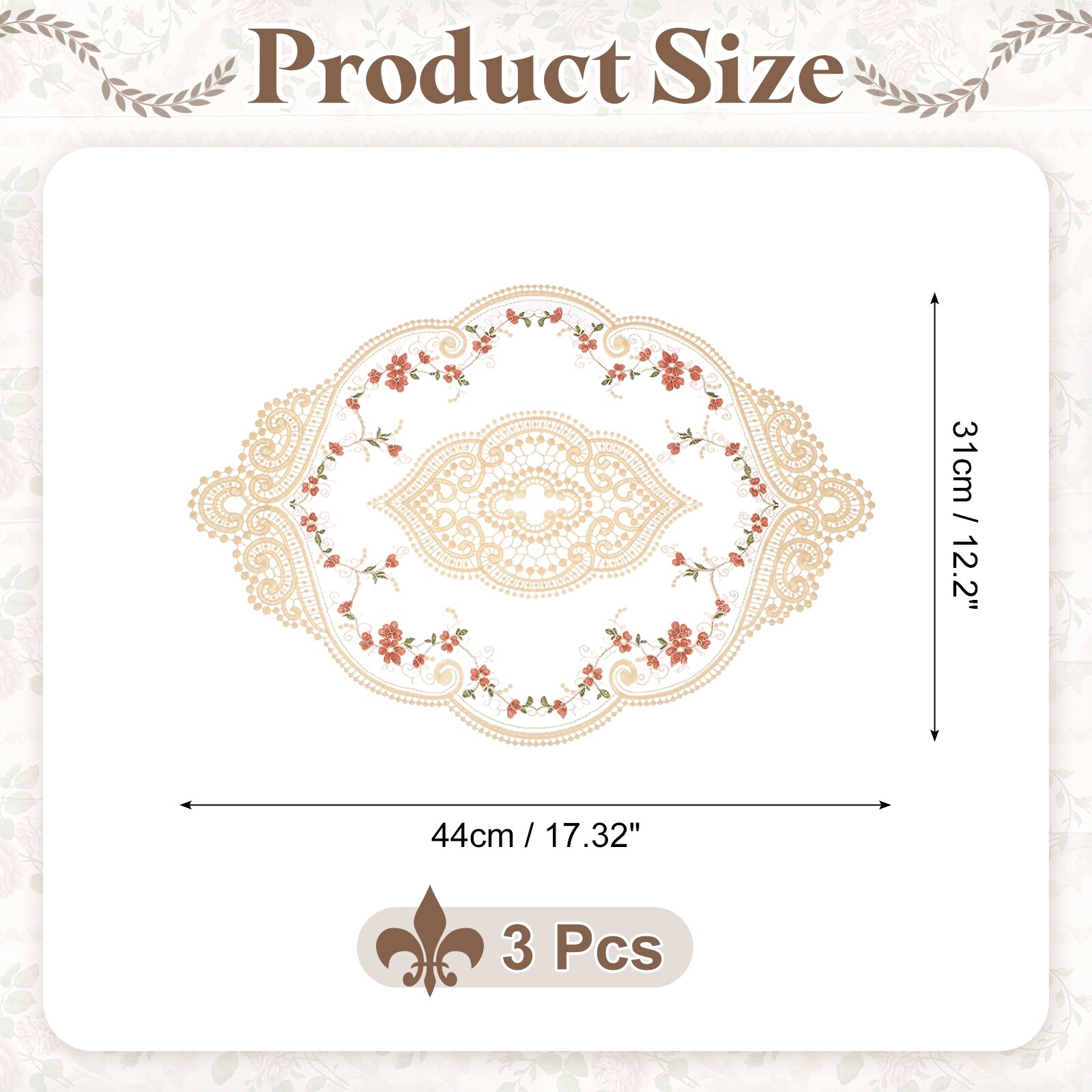 3 Pcs Lace Placemats, 12x17-in Vintage Table Doilies