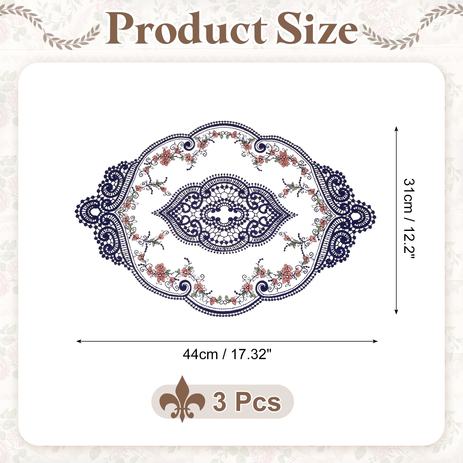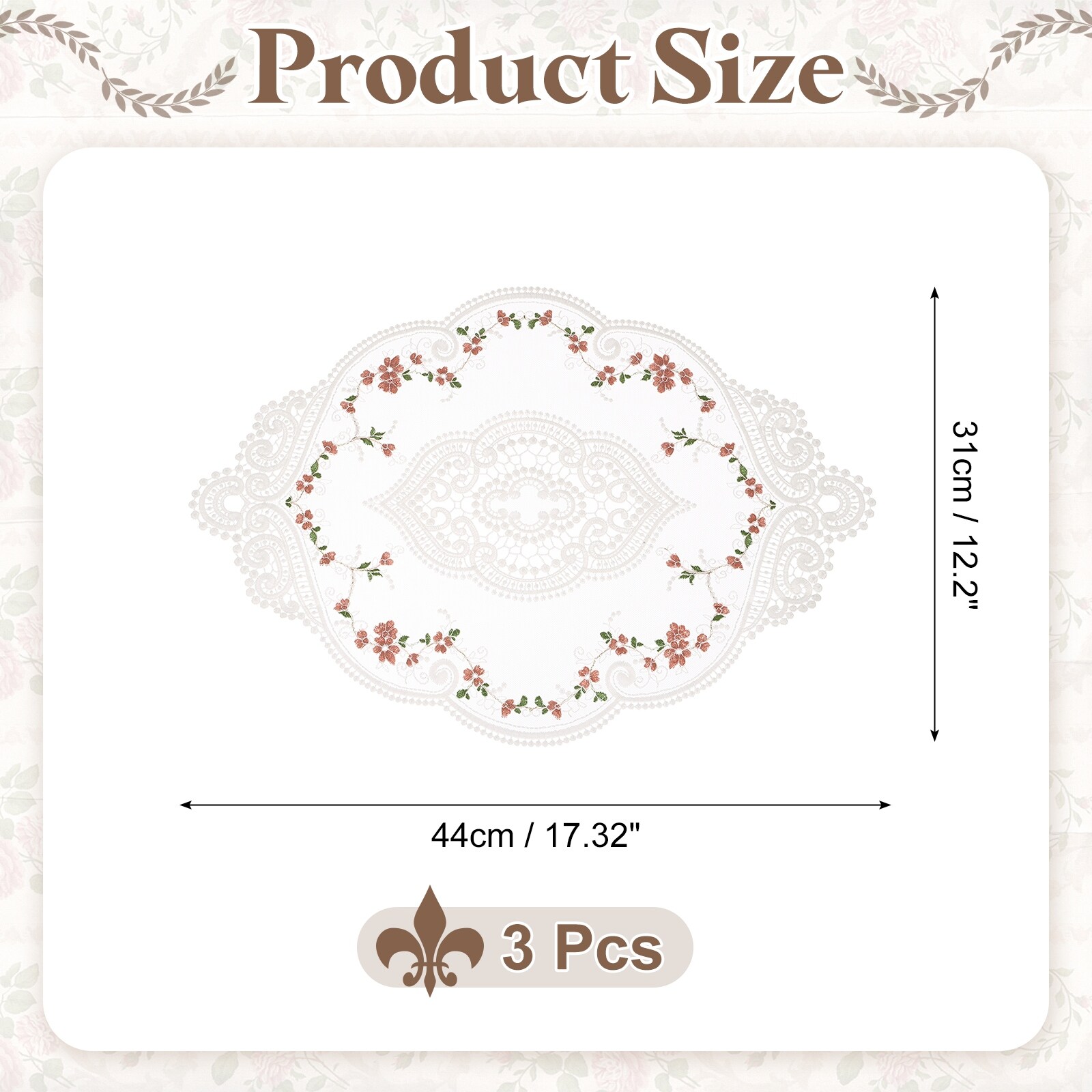 3 Pcs Lace Placemats, 12x17-in Vintage Table Doilies