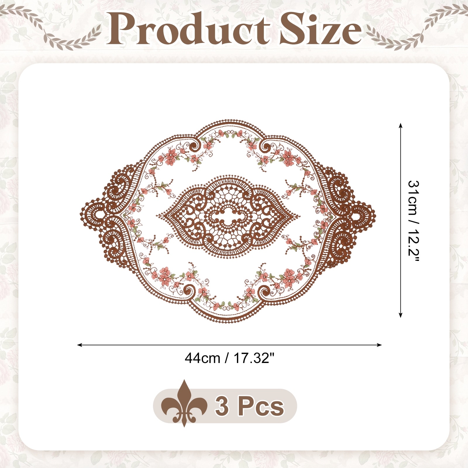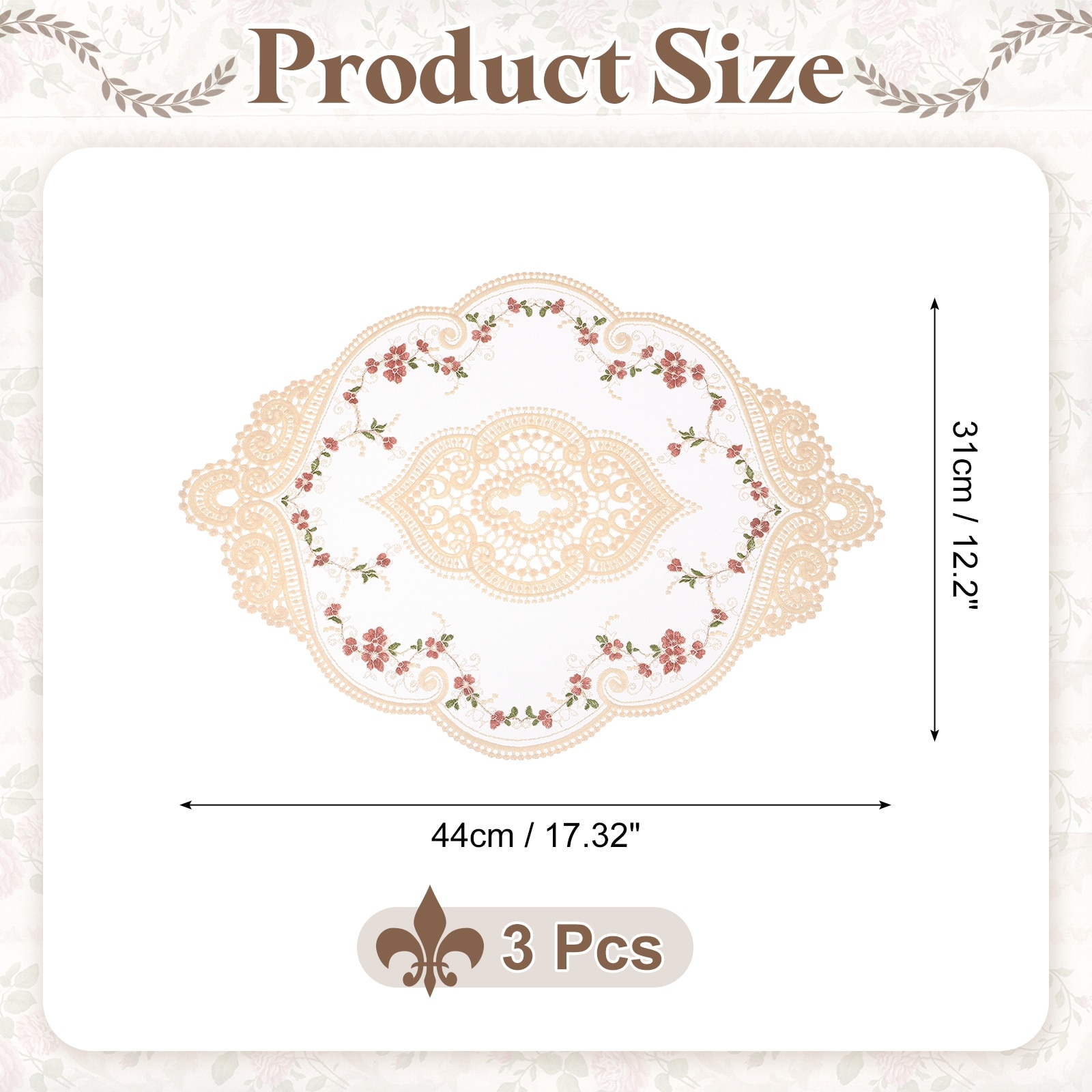 3 Pcs Lace Placemats, 12x17-in Vintage Table Doilies