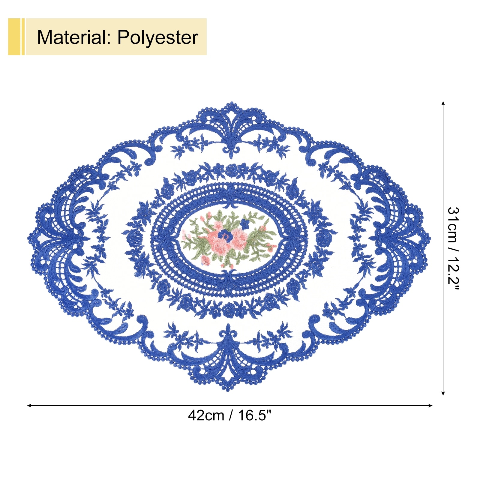 Bailey Blue Reversible Machine Washable Round Scallop Quilt Placemats Set of 6