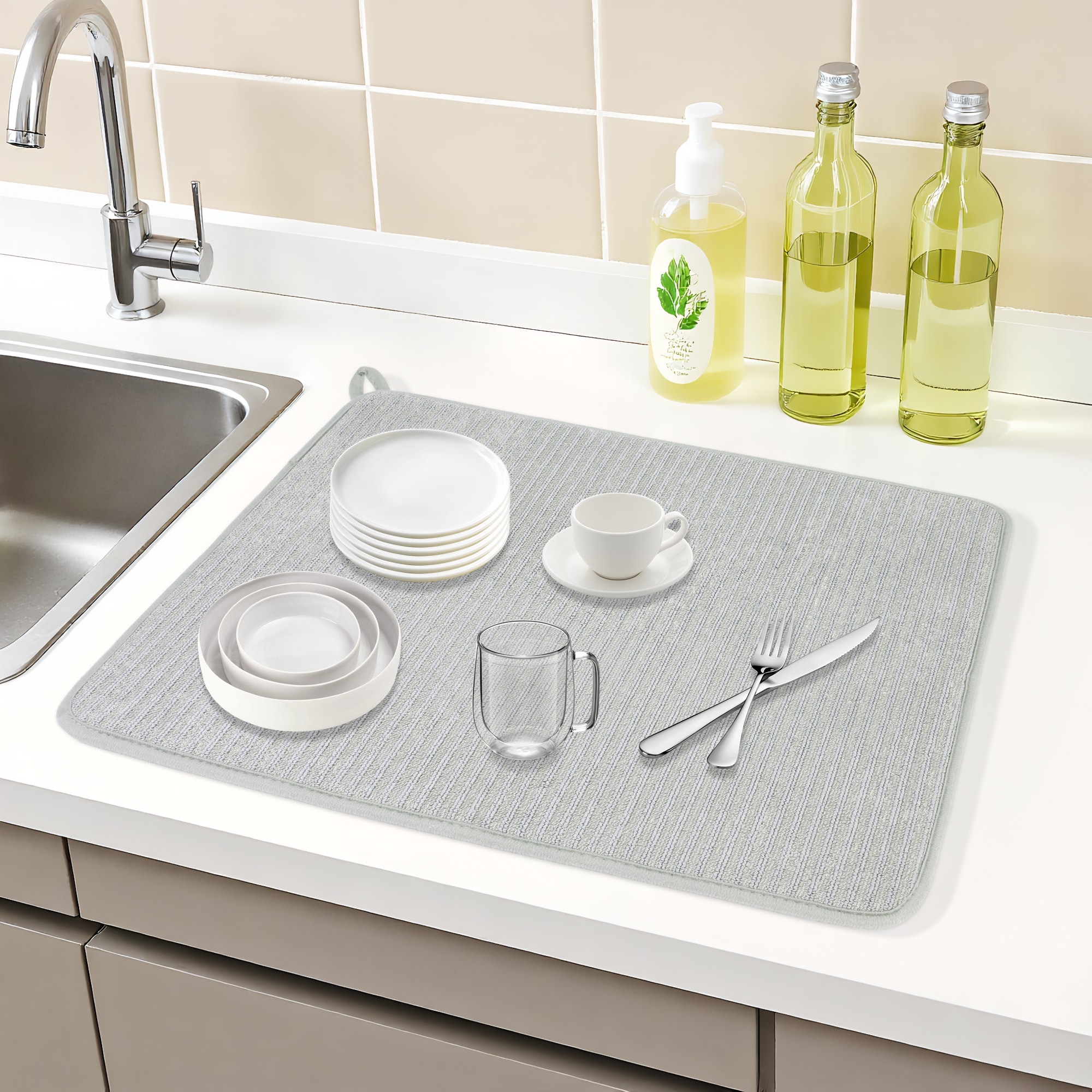 Dish Drying Mat, Absorbent Microfiber Kitchen Mat, Stone Drying Mat for Kitchen Counter, Dishes, Utensils, Pots