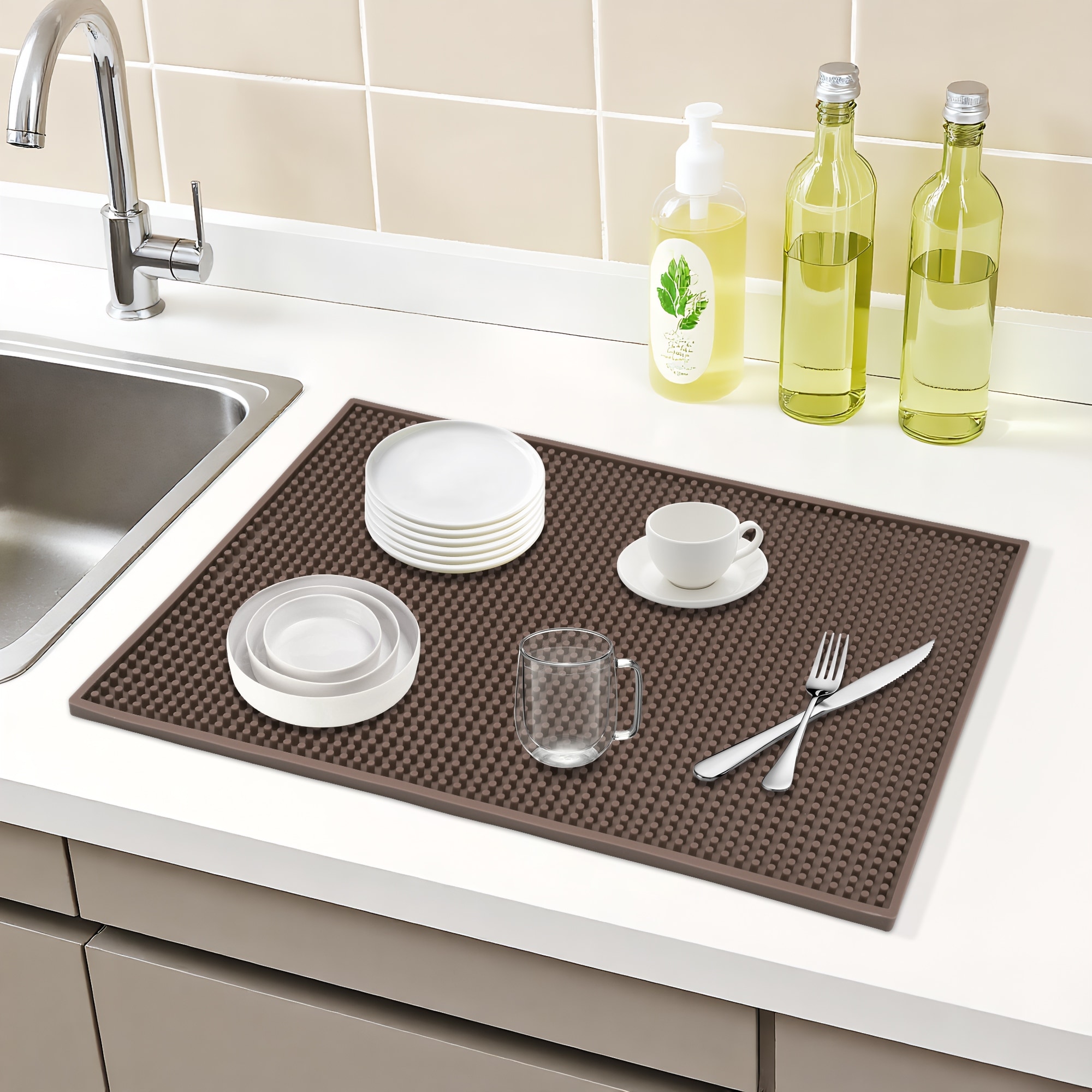 Silicone Dish Drying Mat for Kitchen Counter, Easy Clean Waterproof Kitchen Mat, Concave and Convex Design Silicone Mat