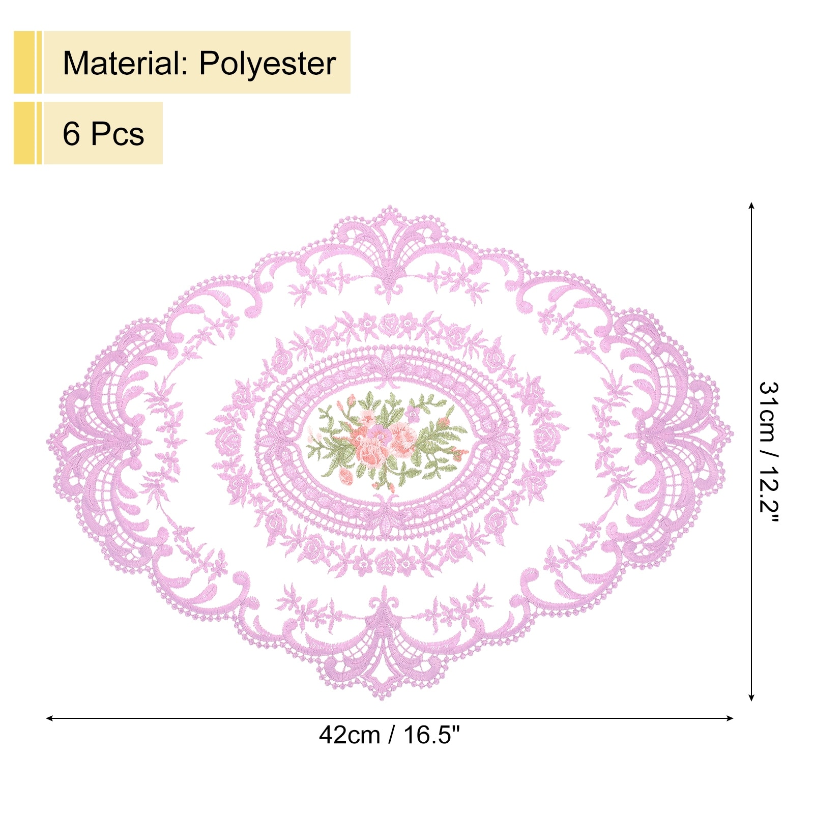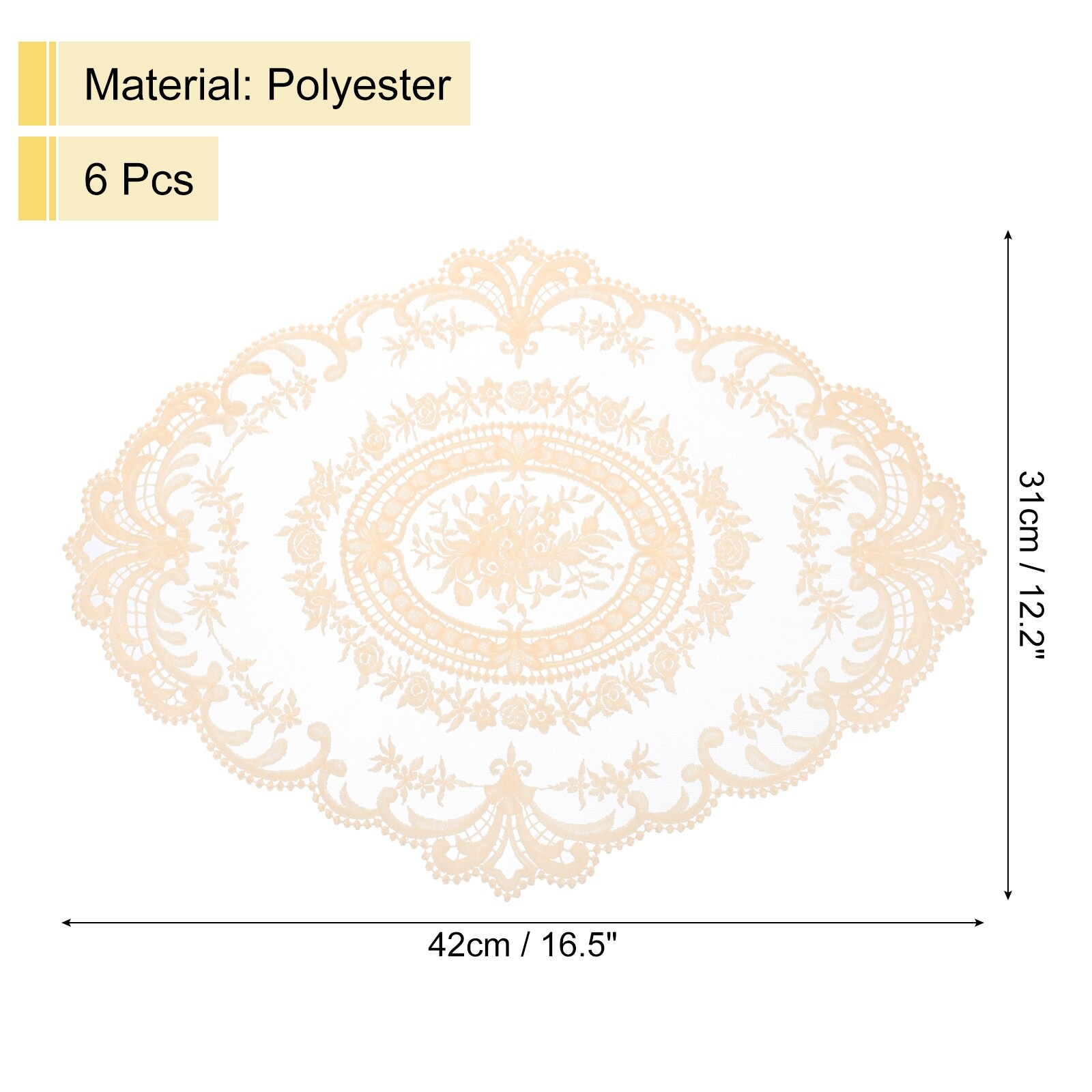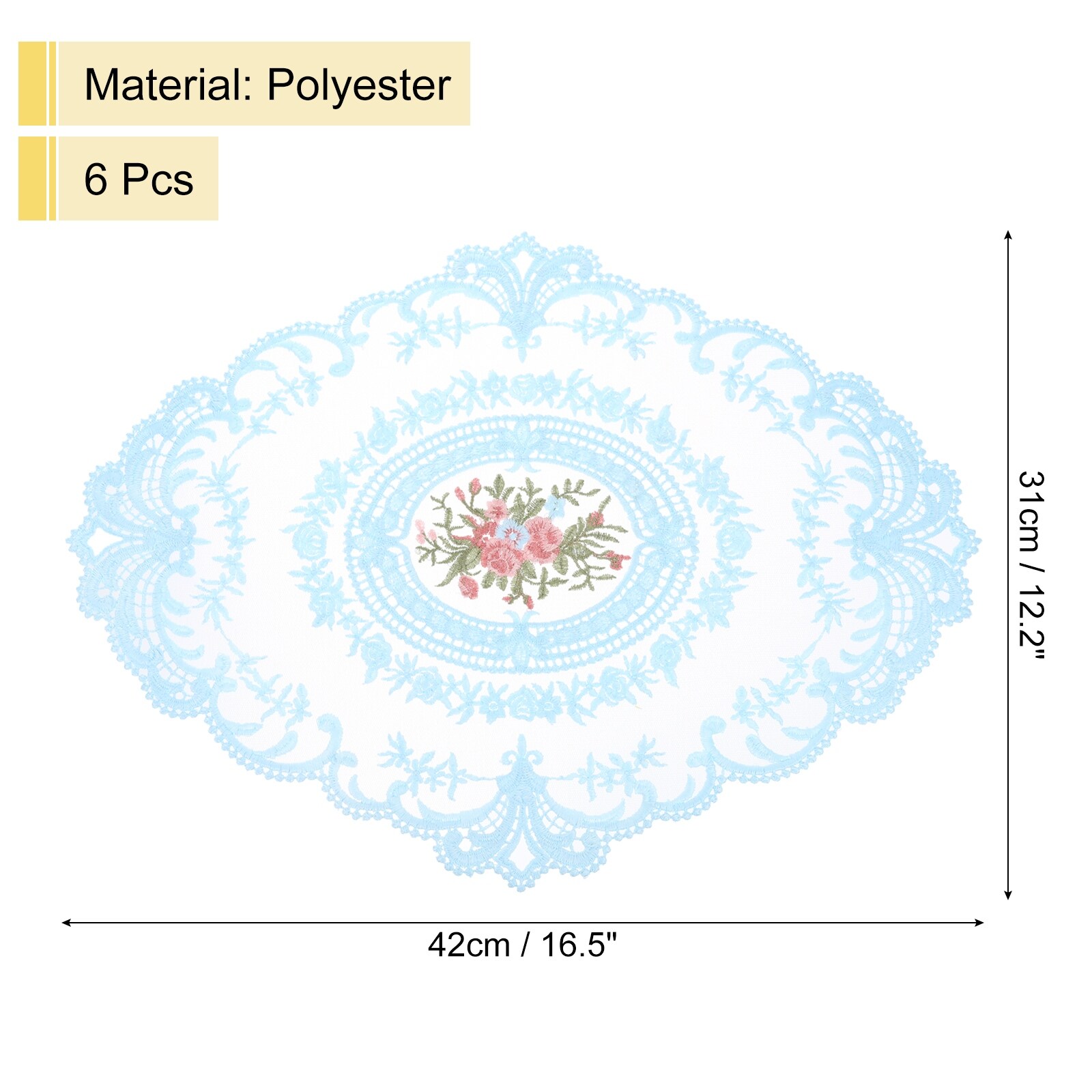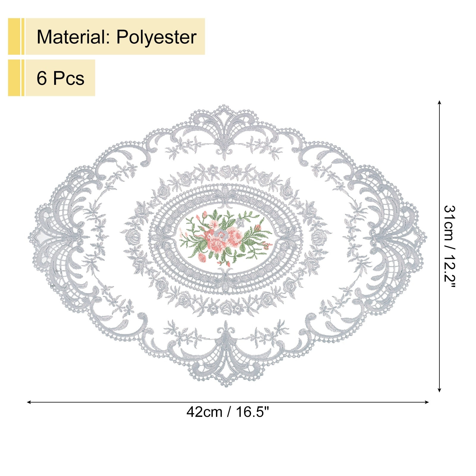 6Pack 12x16in Retro Lace Placemat Oval French Crochet Doilies - 12x16-in