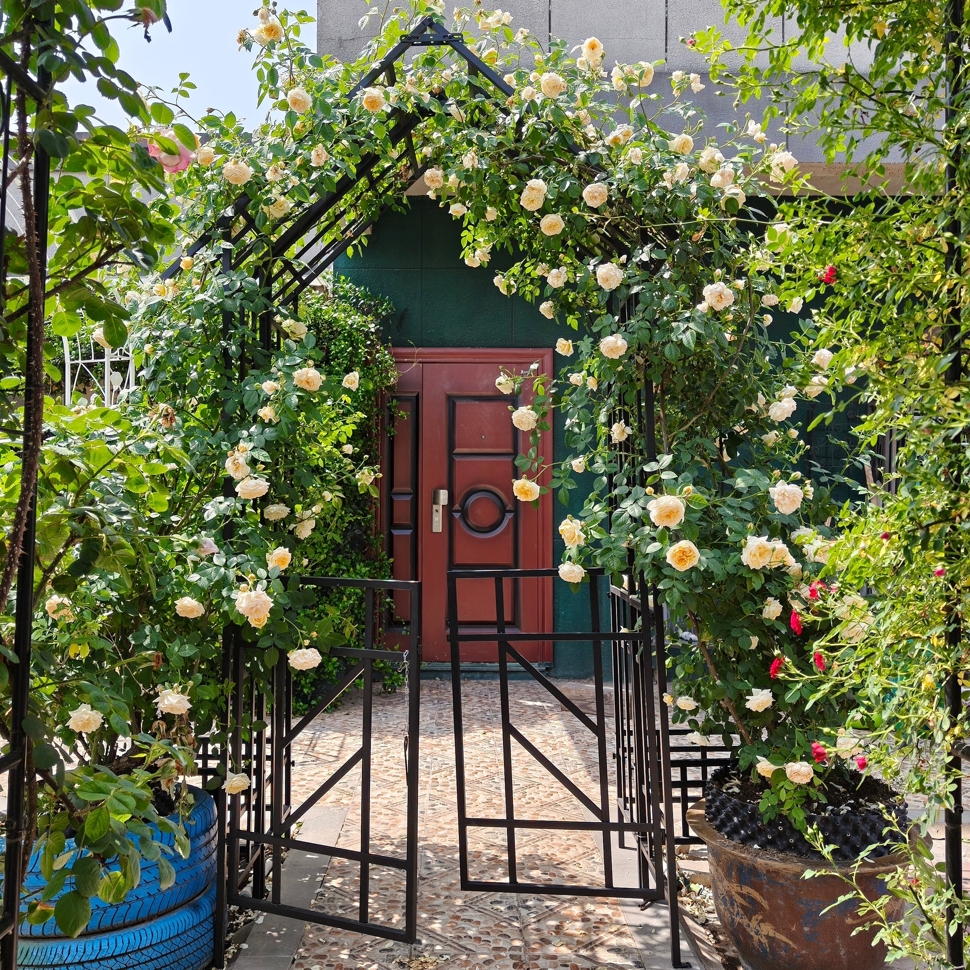 Metal Garden Arch with Gate W58.07*H97.24 Climbing Plants Support Rose Arch Outdoor Black - 1 Pack