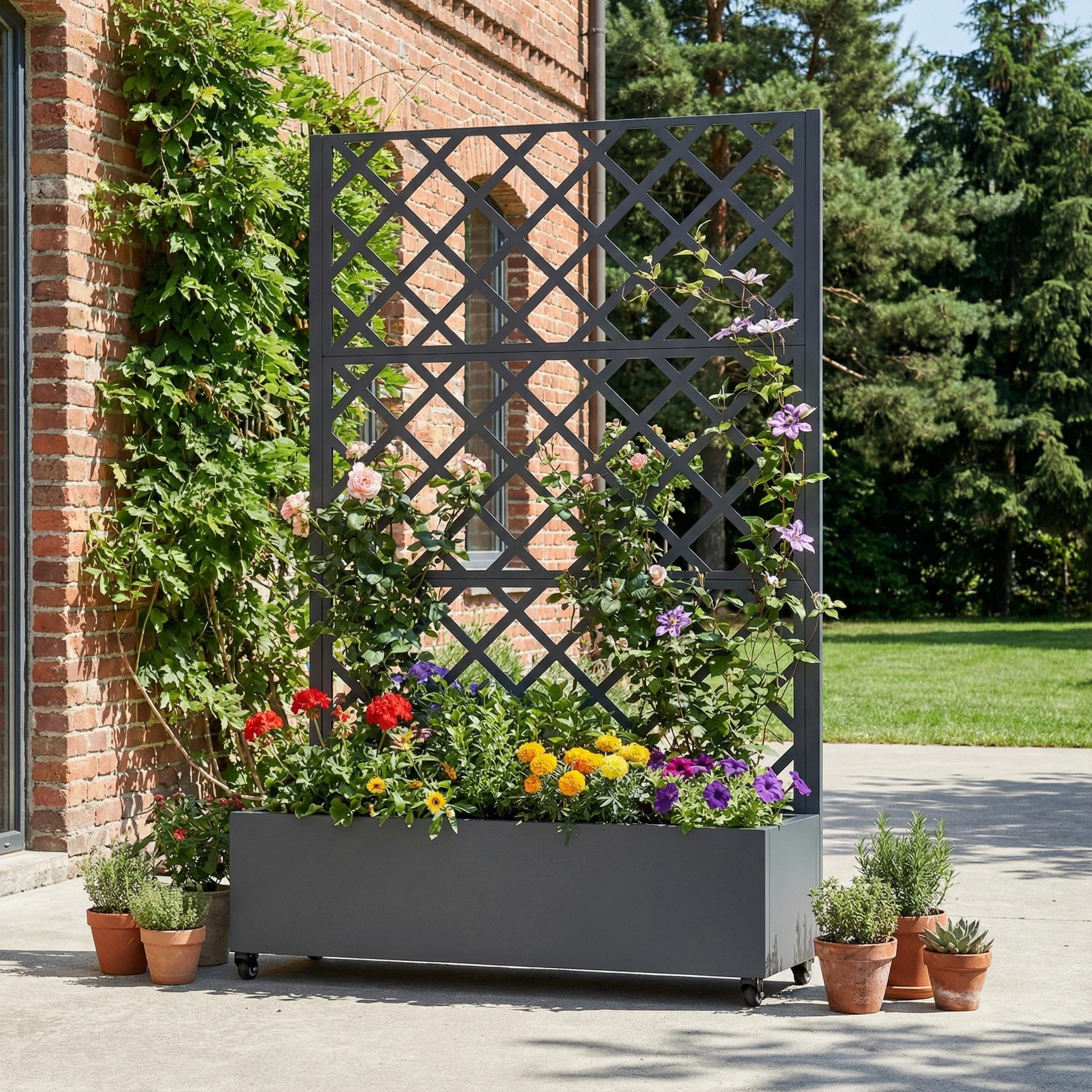 Raised Garden Bed Planter with Trellis Movable Planter Box with Lockable Wheels