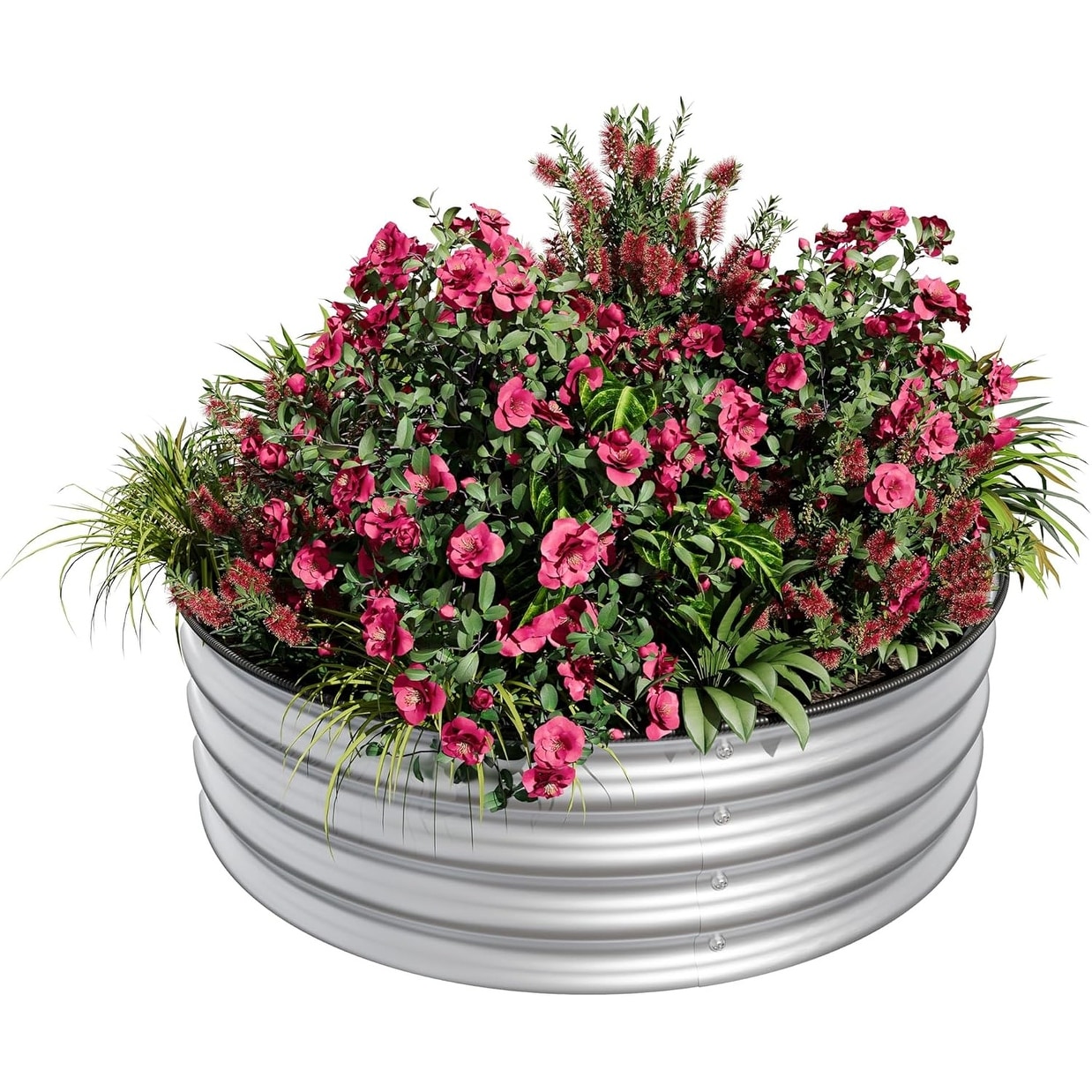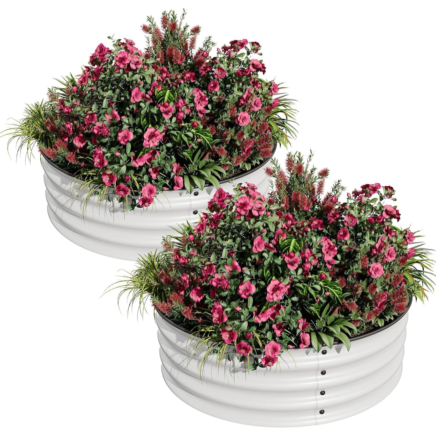 Round Galvanized Raised Garden Bed 2x1ft, Metal Planter Box with Open Bottom, Rustproof, Easy Assembly