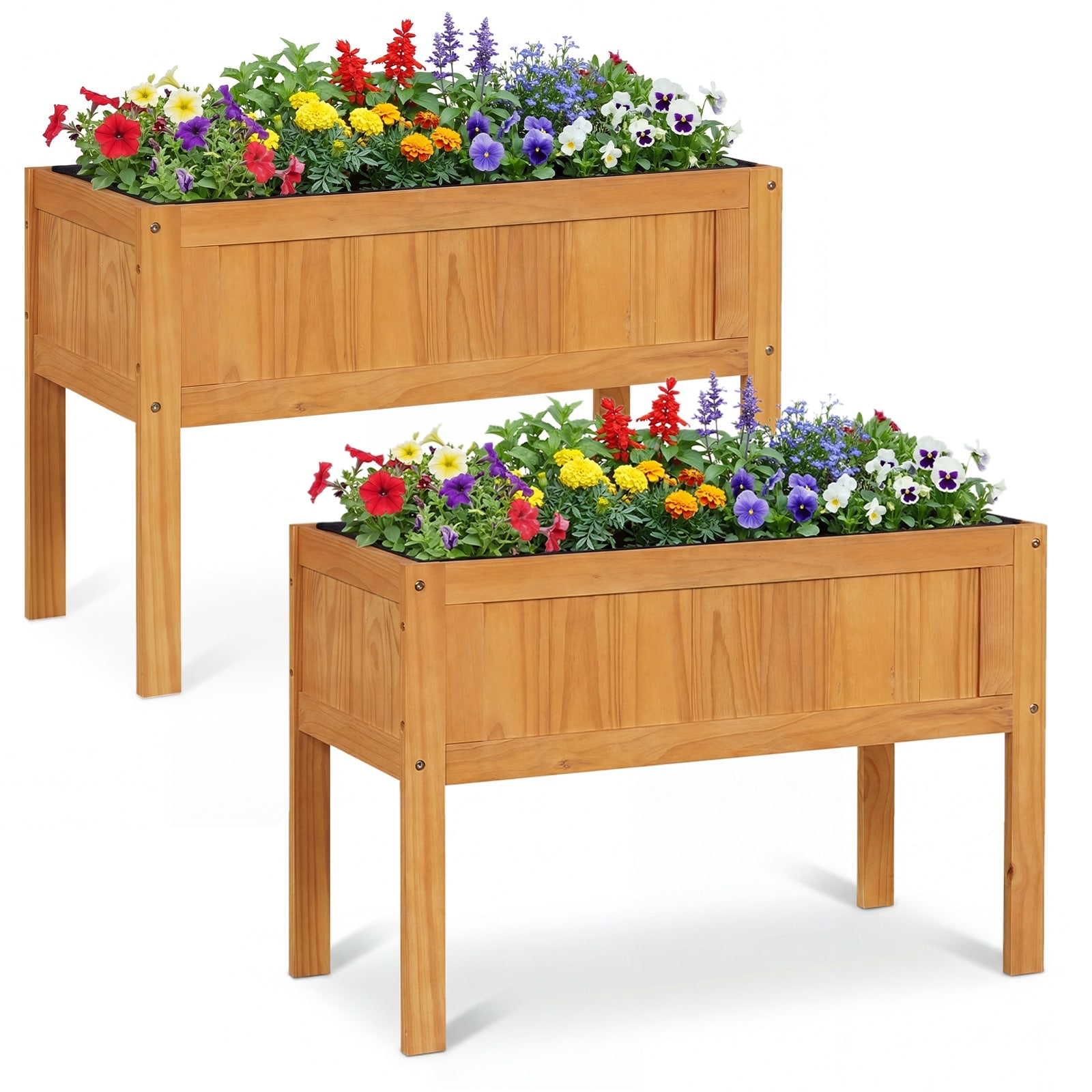 Costway Wooden Raised Garden Bed Elevated Planter Box with Bed Liner &