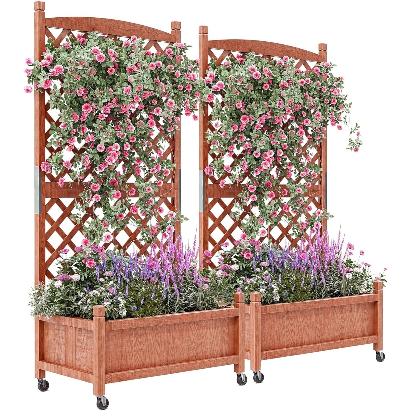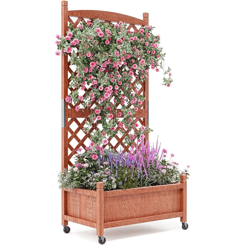 Wooden Raised Garden Bed with Trellis & Wheels, 29.5in Planter for Climbing Plants, Patio & Balcony
