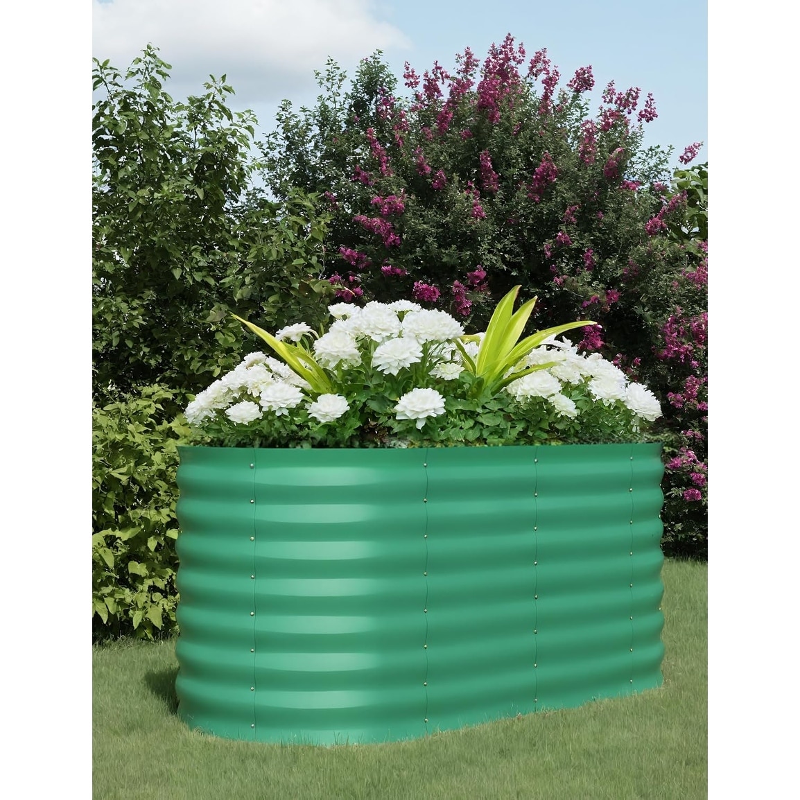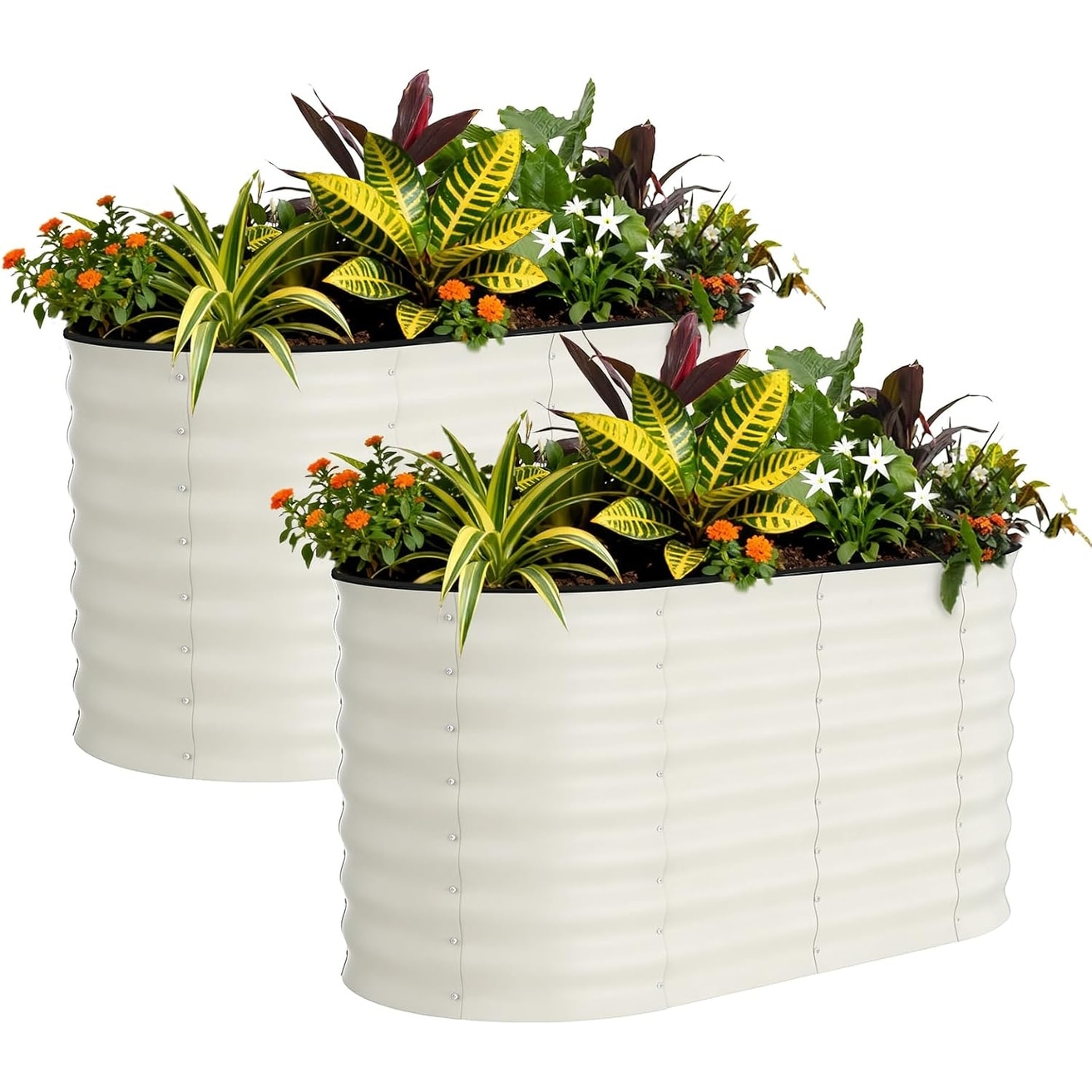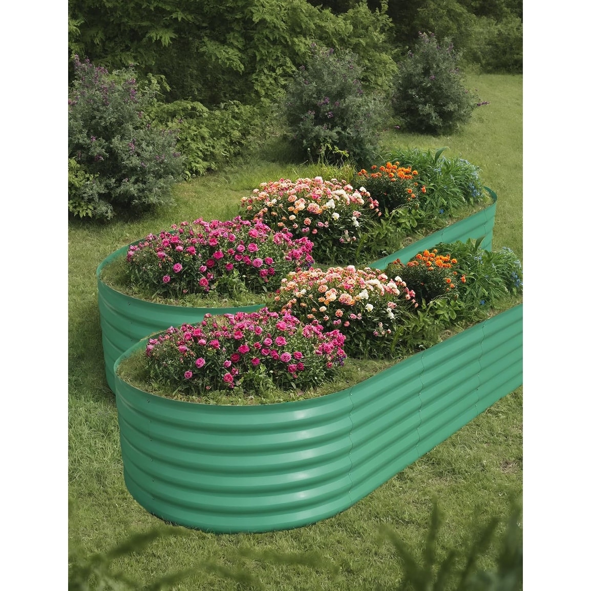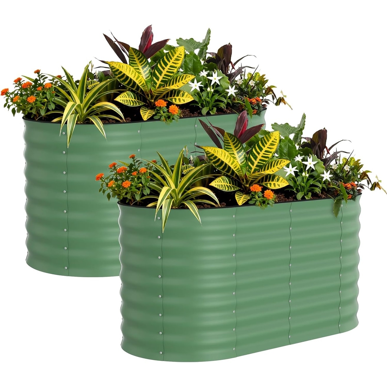 2-Pack Galvanized Raised Garden Beds, Oval Metal Planter Boxes for Vegetables & Flowers, Green