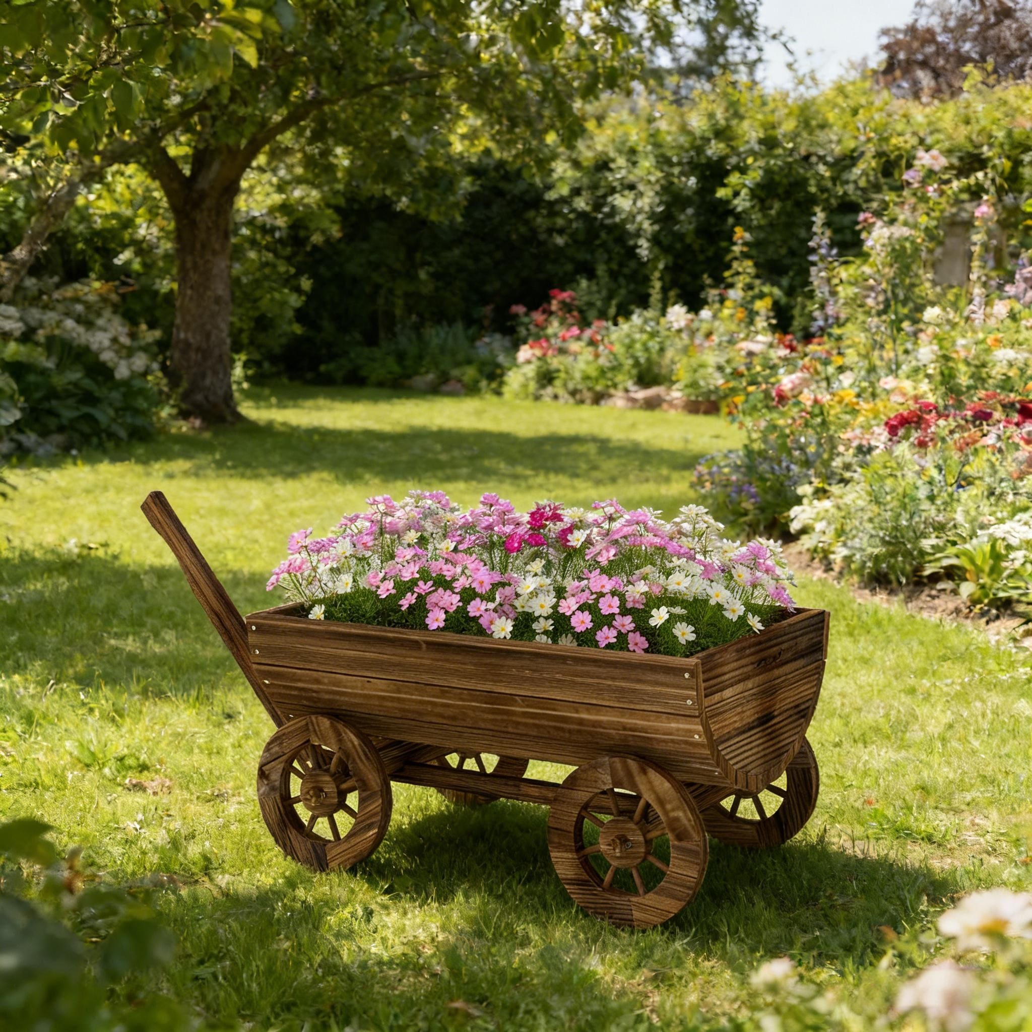 Vintage Wagon Garden Planter with Rolling Wheels for Flower, Vegetable