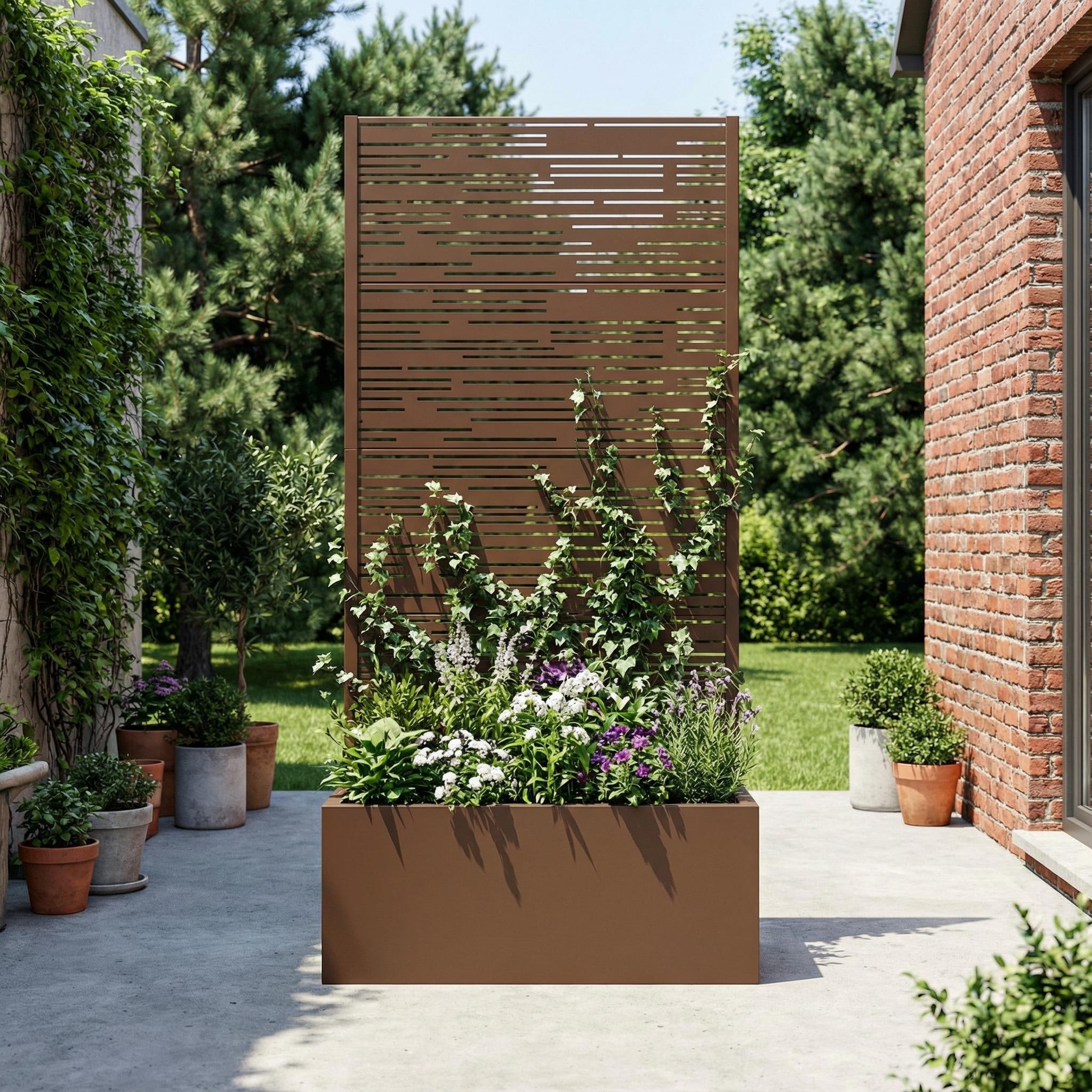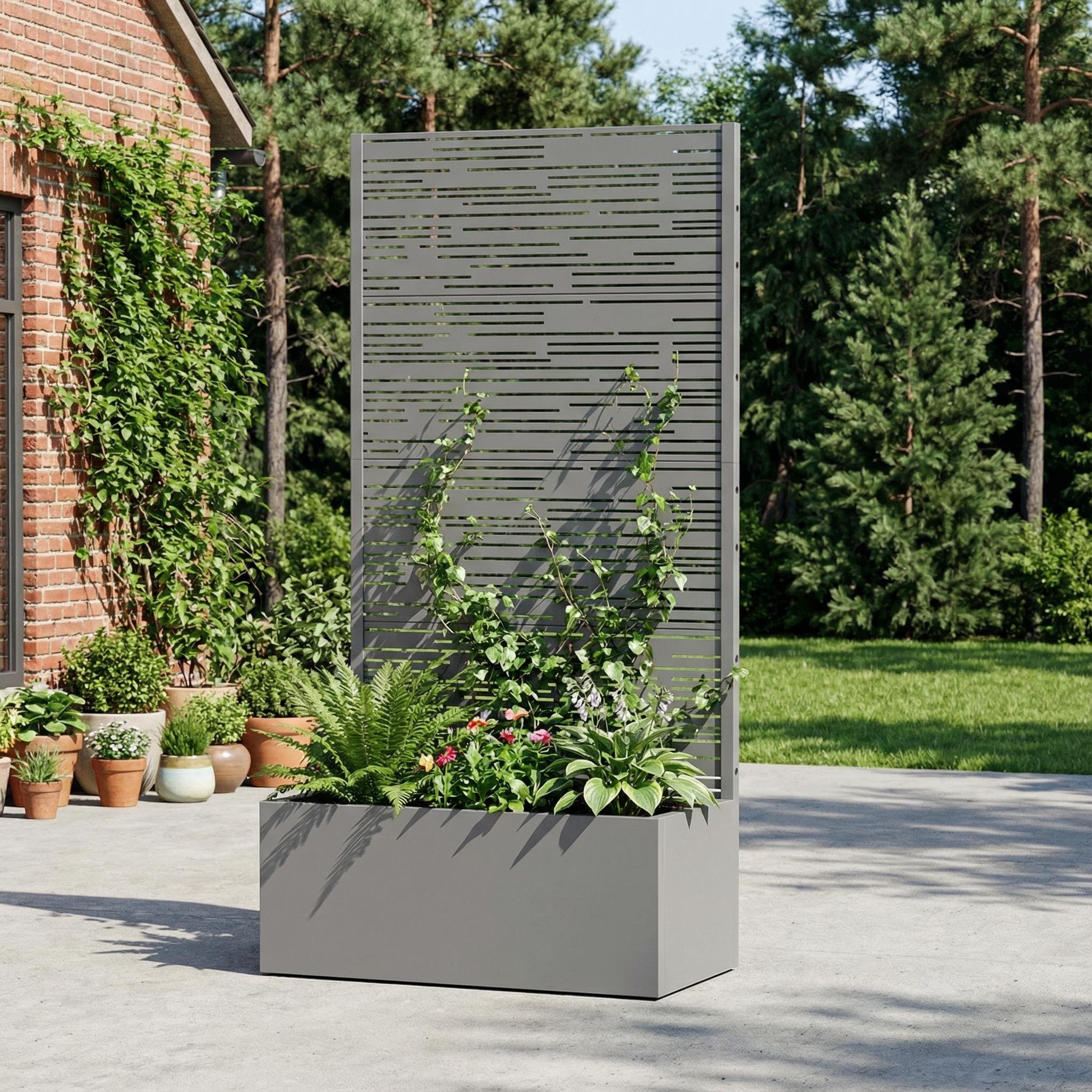 Metal Galvanized Planter Box with Trellis Privacy Screen Lockable Wheels