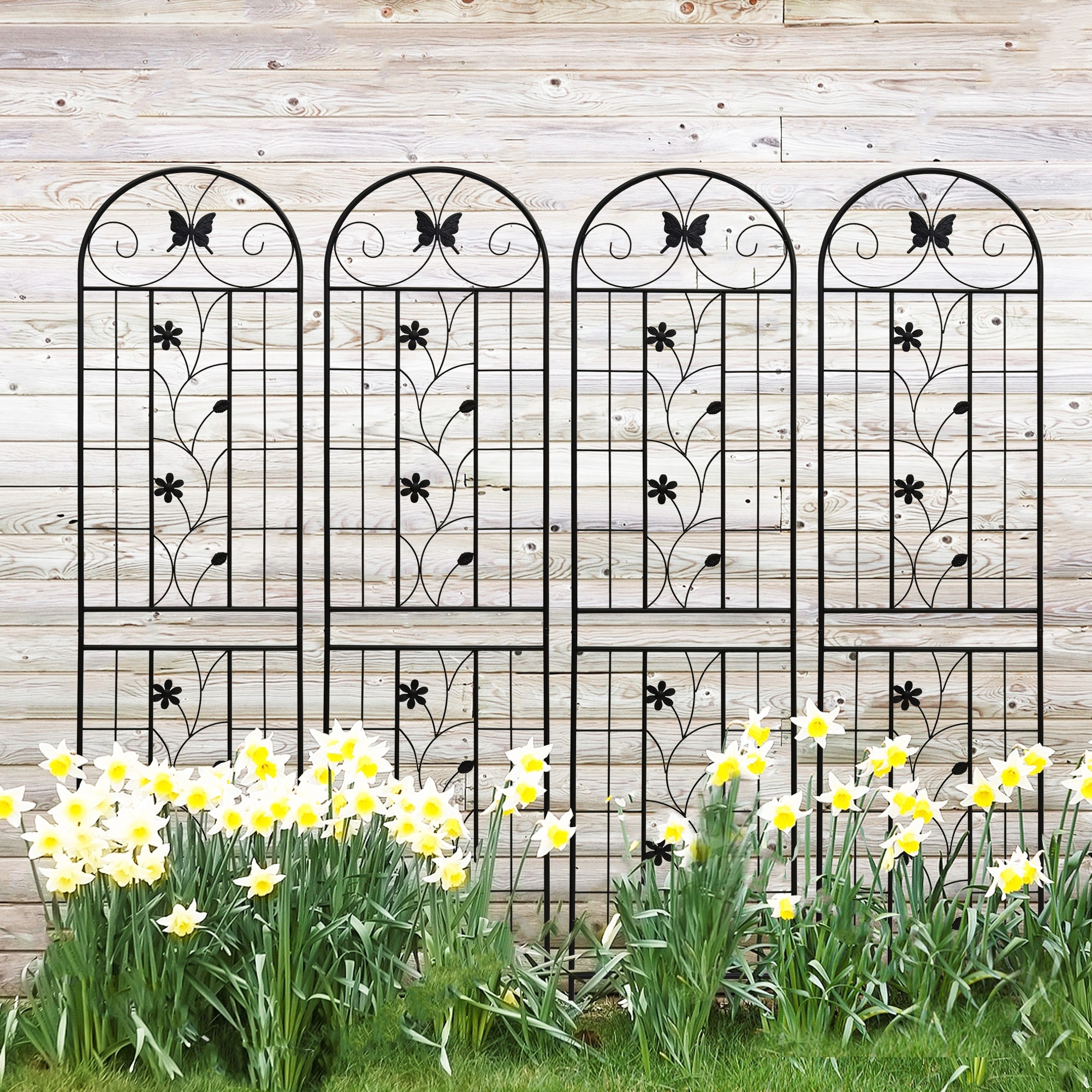 Metal Garden Trellis 86.7" x 19.7" Rustproof Trellis for Climbing Plants Outdoor Flower Support Black