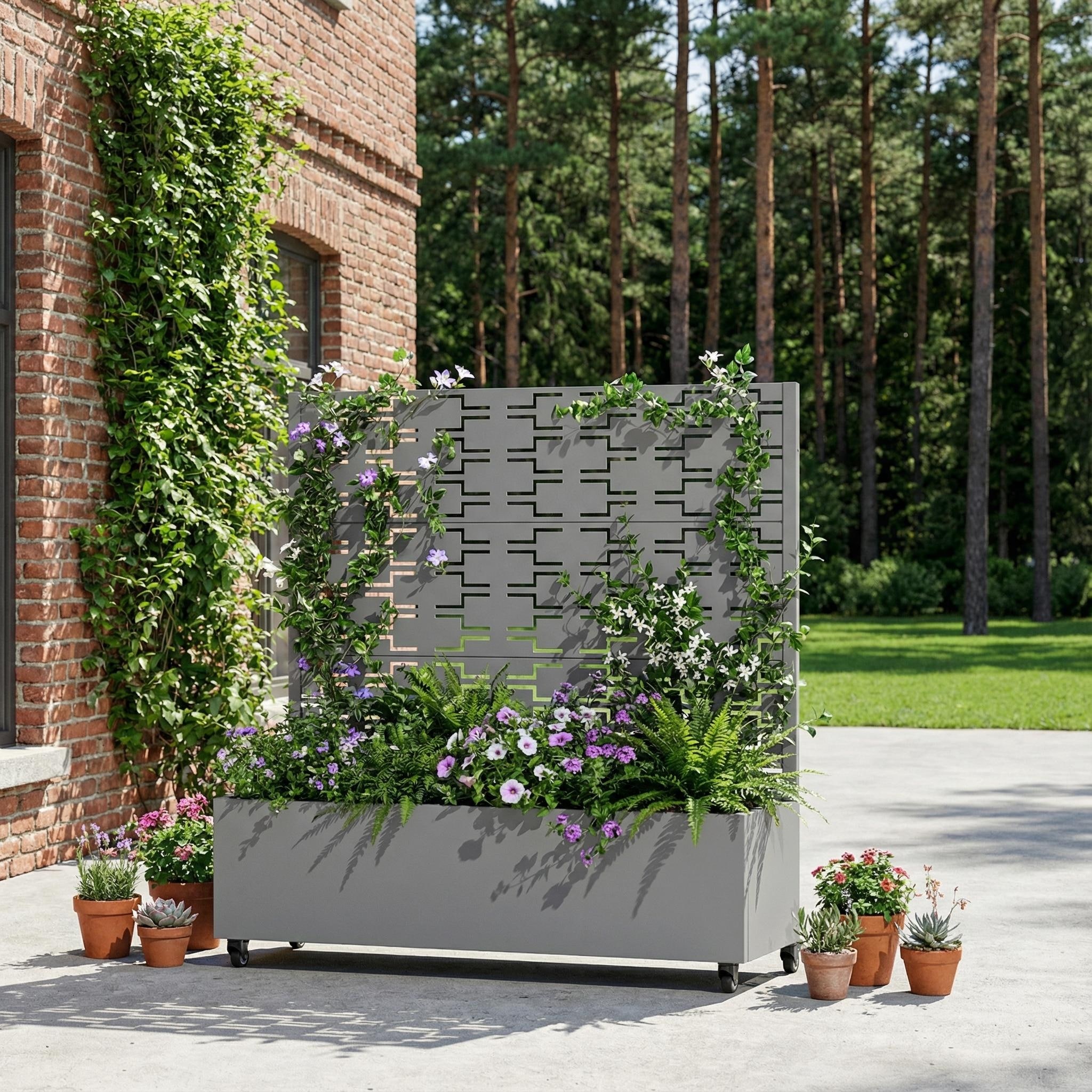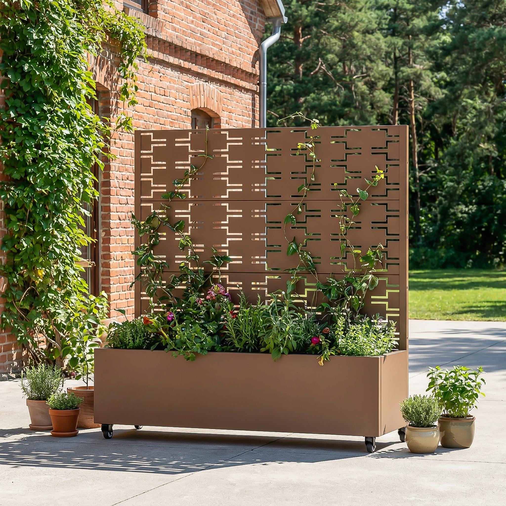 Metal Planter Box with Trellis Privacy Screen Planter Box with Lockable Wheels