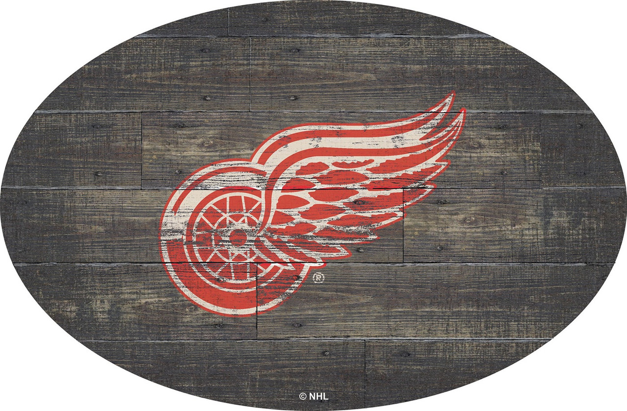 Detroit Red Wings 46" Distressed Wood Oval Sign