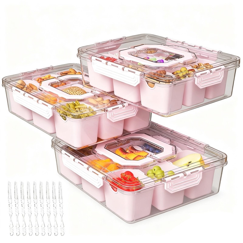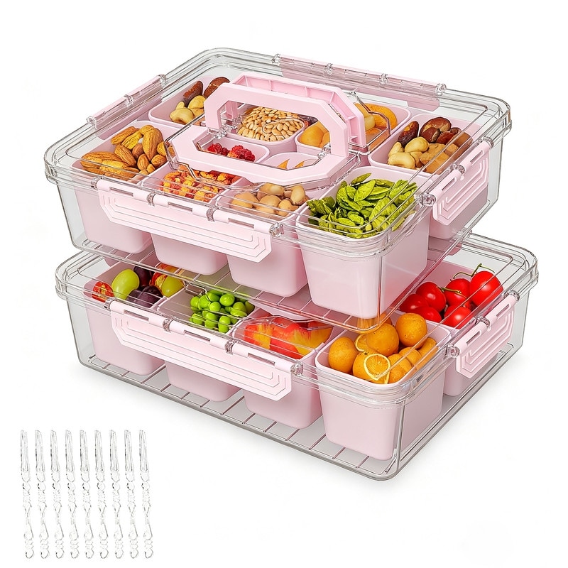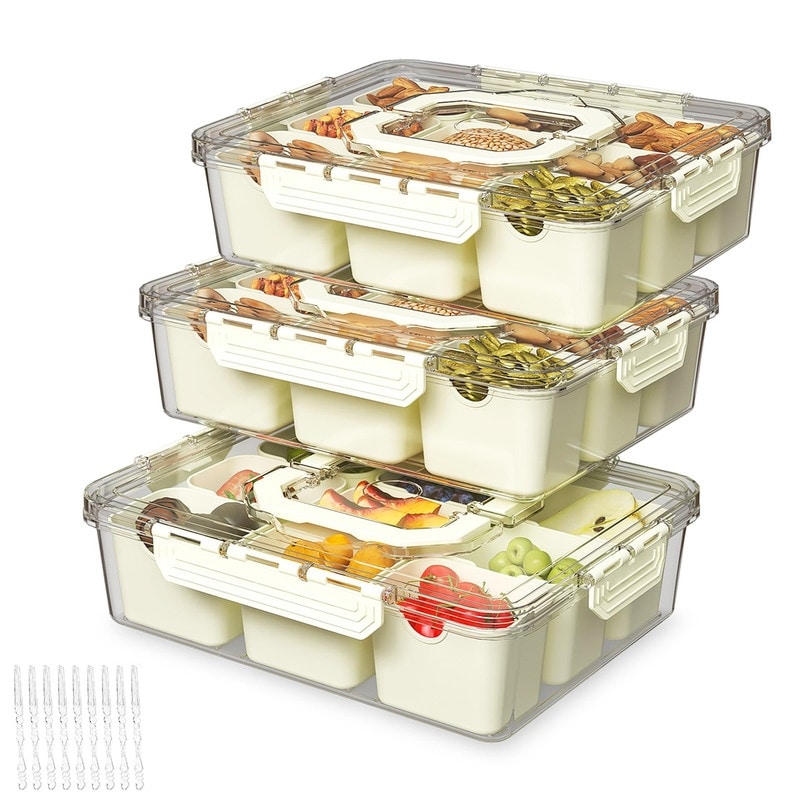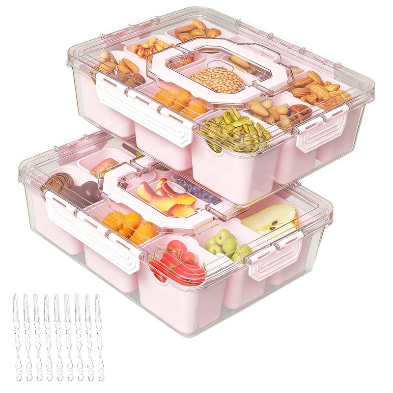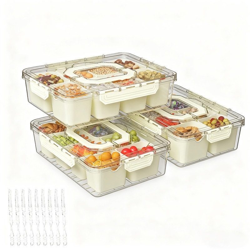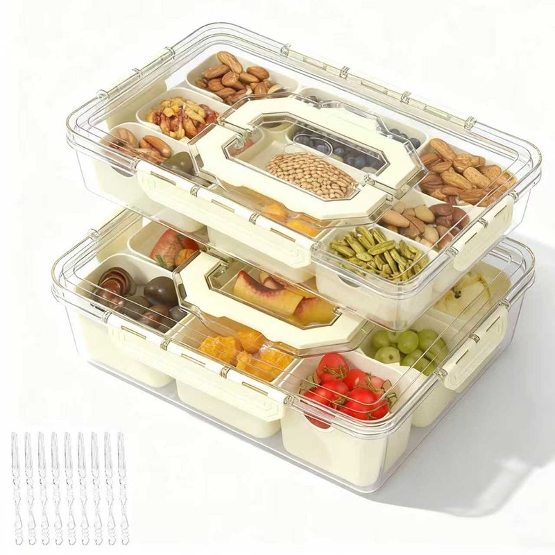 Divided Serving Tray with Lid&Handles,Snack Box,Charcuterie Organizer