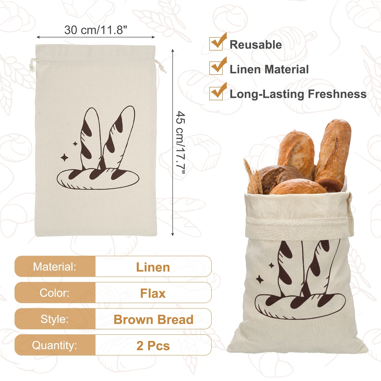Reusable Bread Bags, Drawstring Linen Bread Storage with Liner for Homemade - 2 Pack